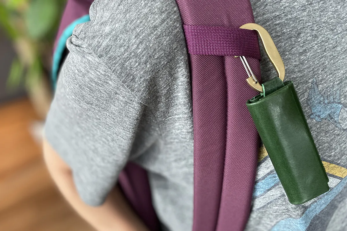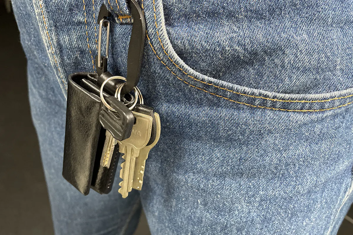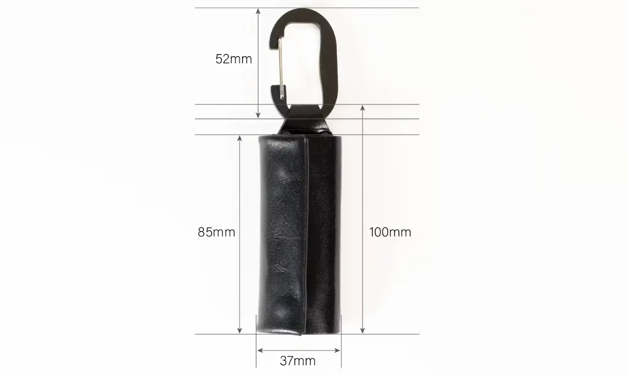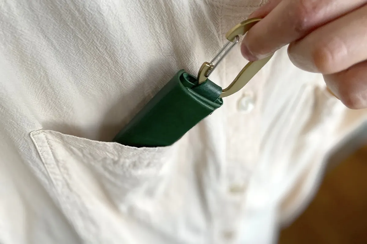 真鍮素材のカラビナは取り外し可能。よりコンパクトに持ちたいときは外すことができます。