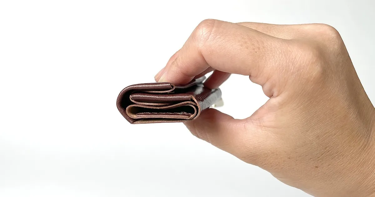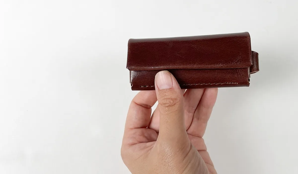 超ミニレザー財布「ONE」の特徴は、なんといってもそのコンパクトさ。この写真を見て財布だと思う人、少ないのではないでしょうか……?