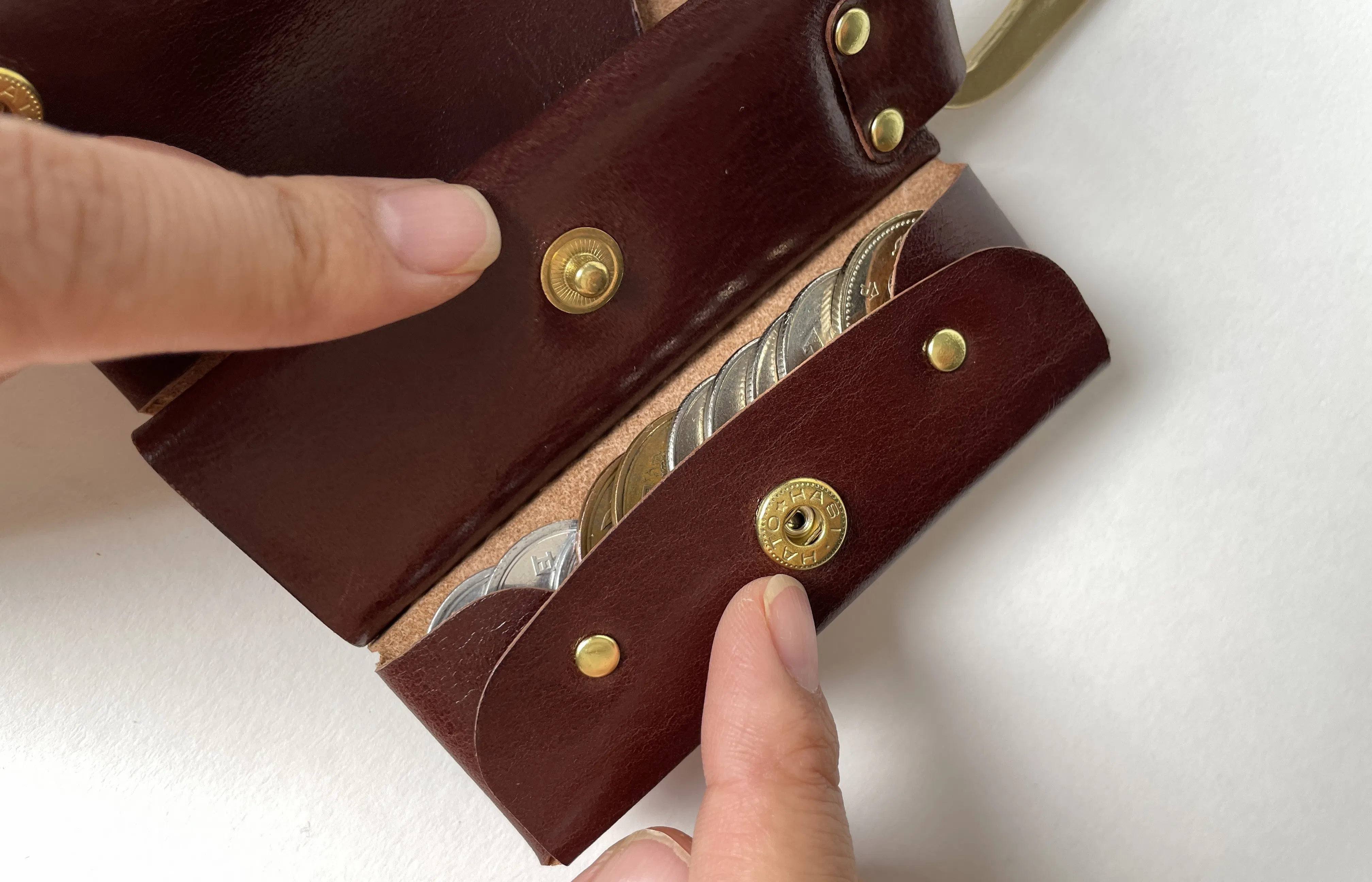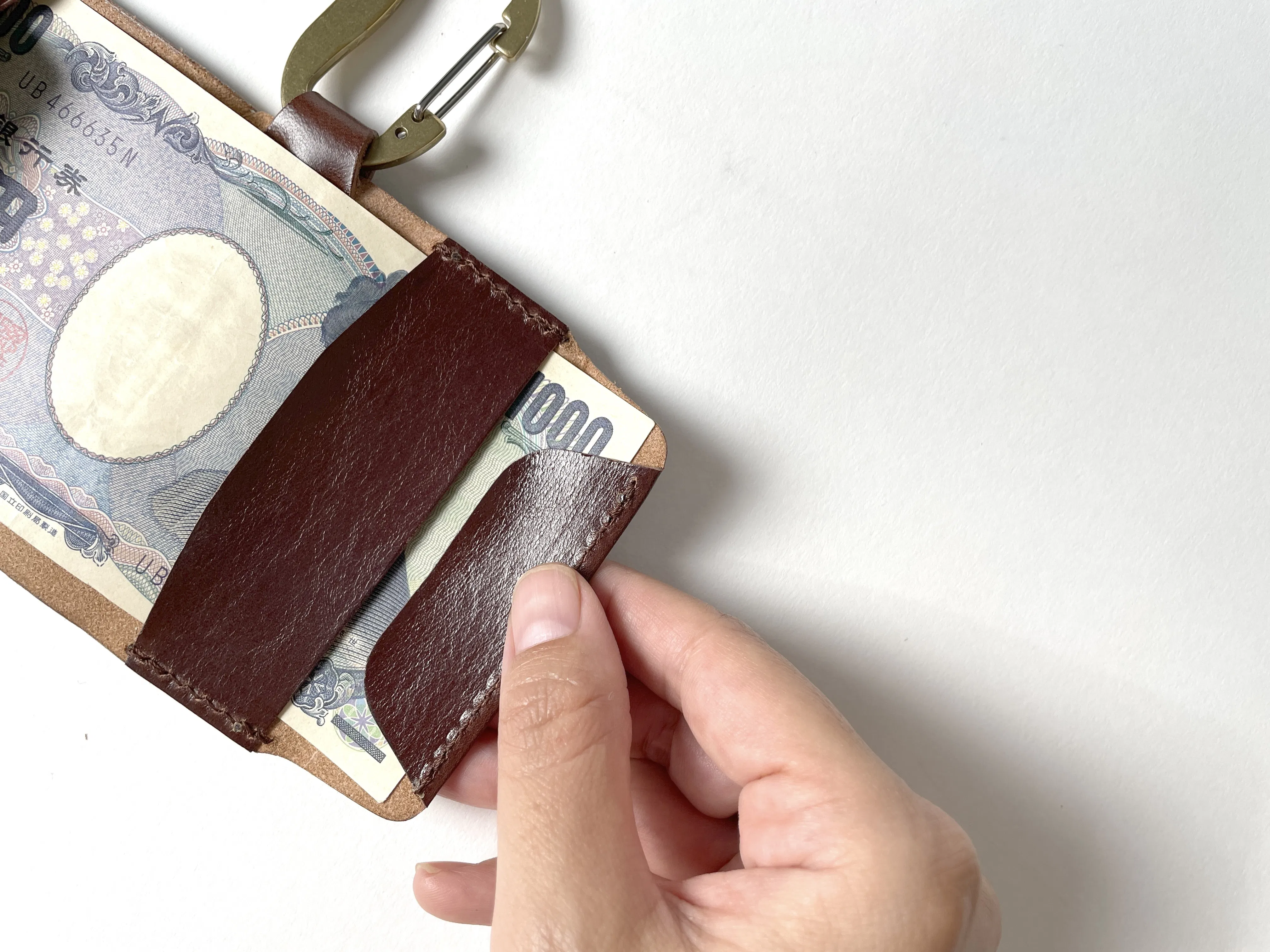 ETC設備の整っていない有料道路、スーパー銭湯の靴箱のデポジット……などなど。そんなときに小銭にすぐアクセスできることに、喜びを感じられるのが、今回のカラビナ付き 超ミニレザー財布「ONE」です。