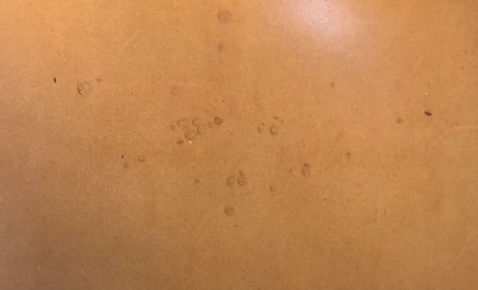 革本来の味わいを残すため、下に掲載した画像のような特長を残すことがあります。これらが大きく目立つ部分は避けながら製作しておりますが、本製品の革の個性や魅力としてご理解いただけると幸いです。