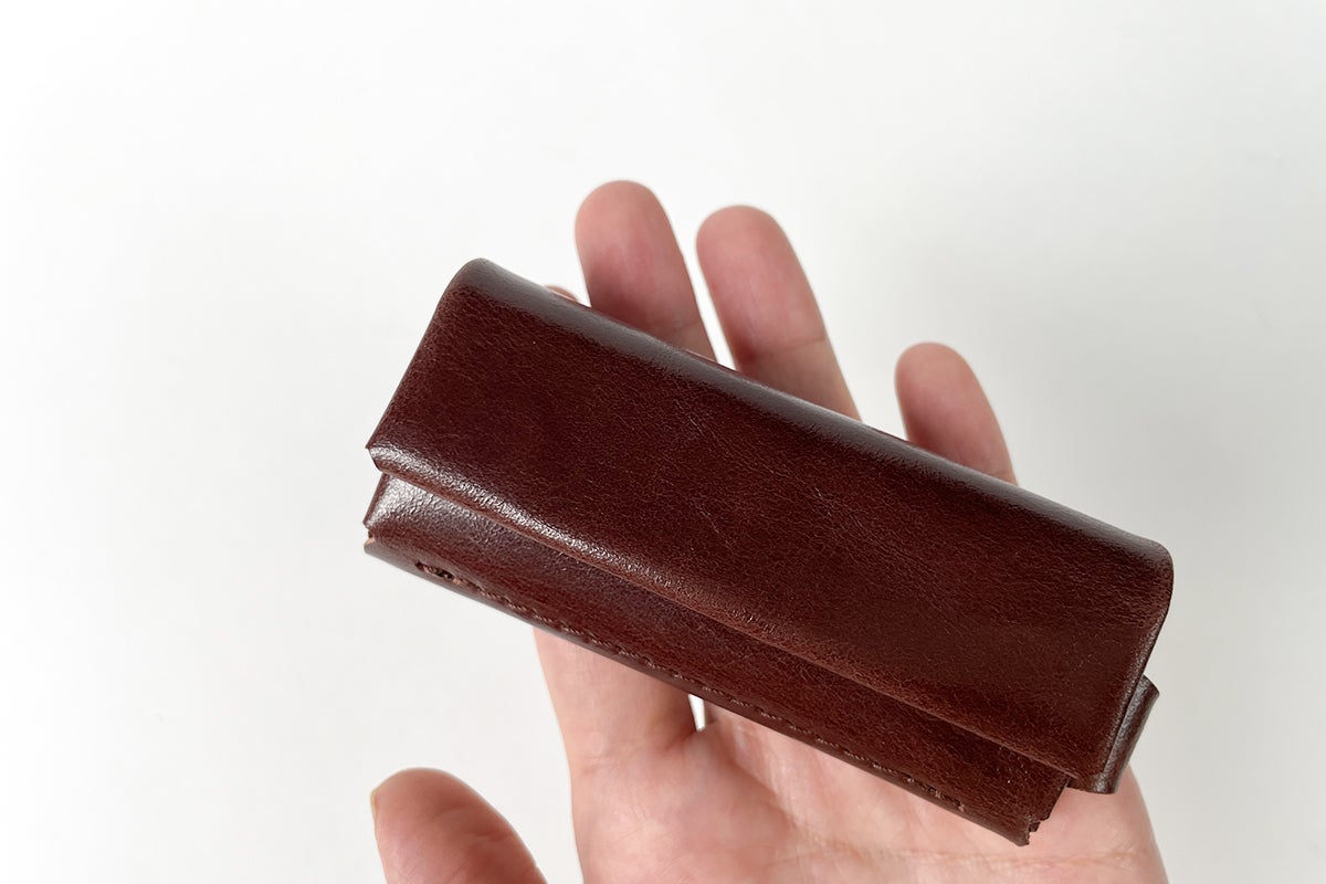 超ミニレザー財布「ONE」の特徴は、なんといってもそのコンパクトさ。この写真を見て財布だと思う人、少ないのではないでしょうか……?