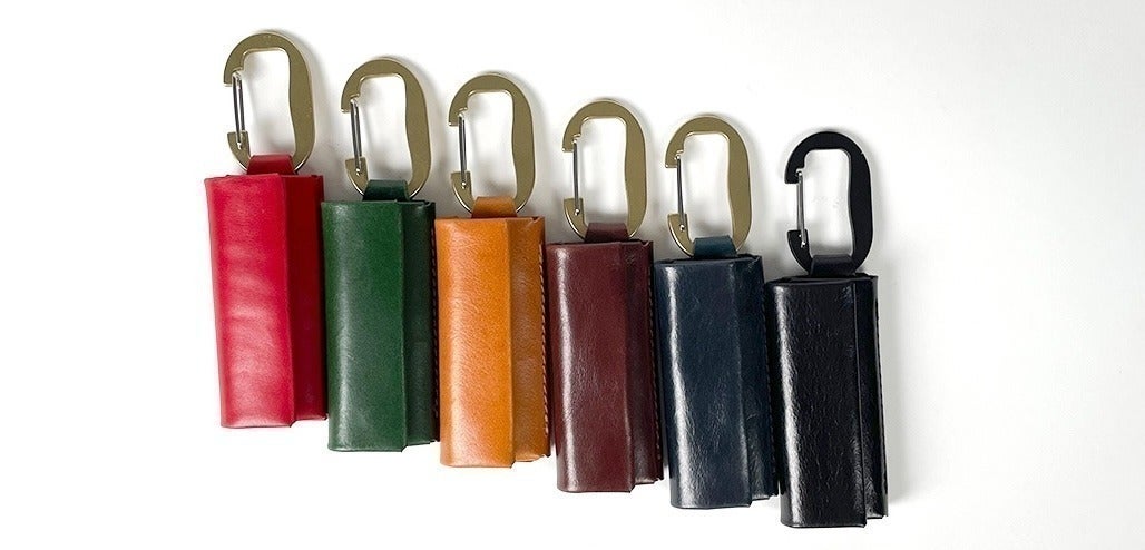 前作はブラック1色でしたが、支援者の皆様からの要望を受けて全6色にカラーバリエーションを増やしました。付属のカラビナは、ブラックのみが同色のブラック、他のカラーは真鍮ゴールドを採用しています。
