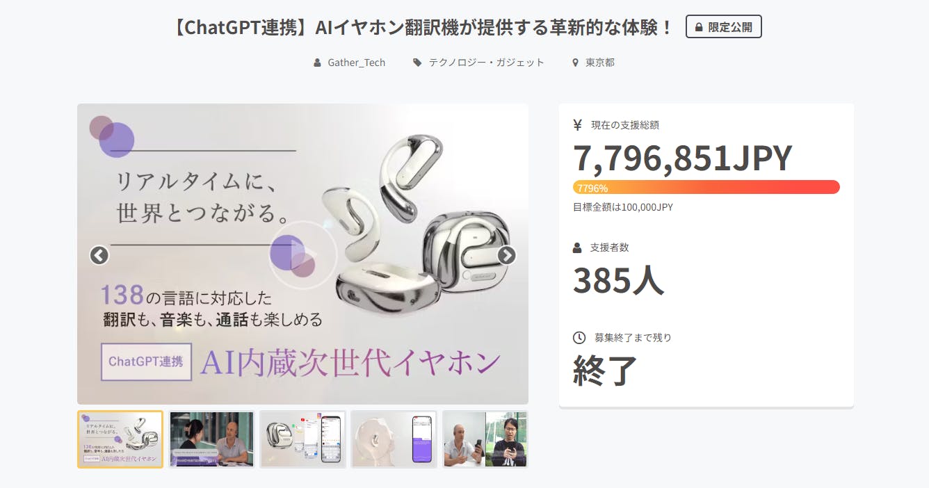 本日、【第二弾】ChatGPT連携次世代AIイヤホンのクラウドファンディングを開始いたしました。