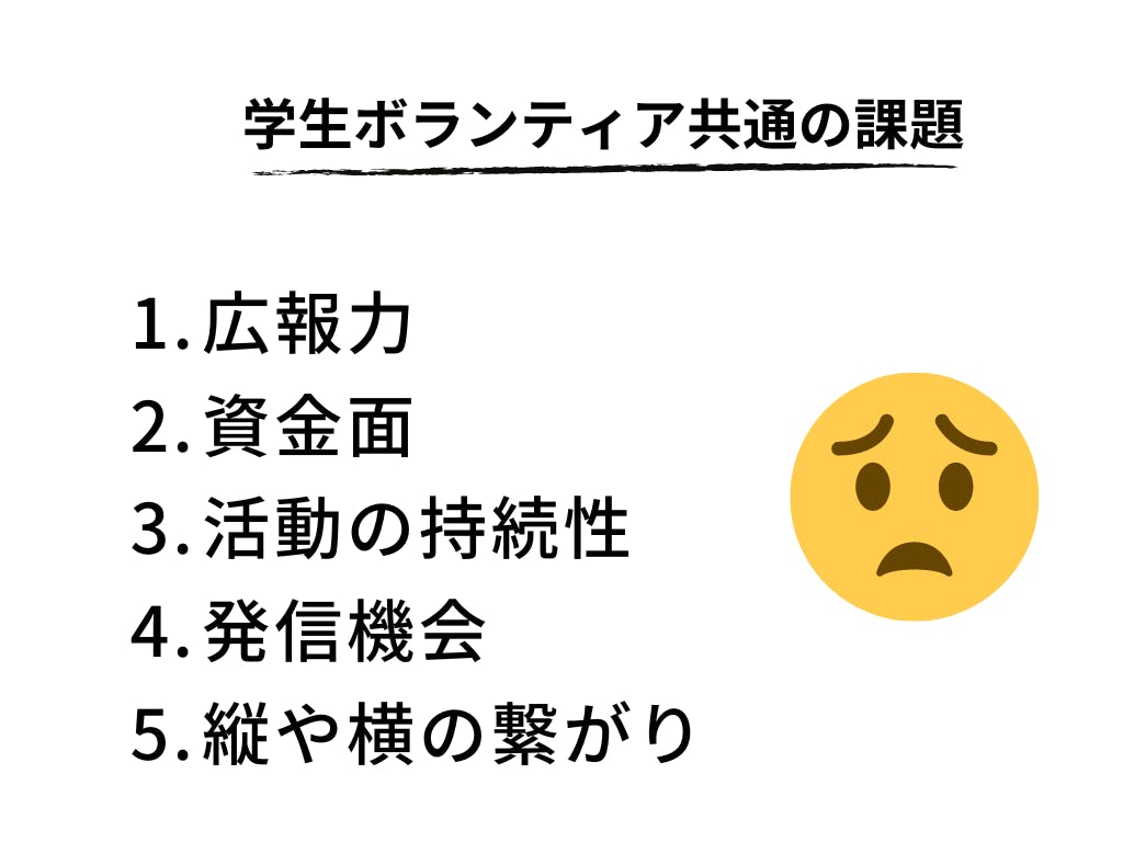 学生のボランティア活動における課題を感じたからです。