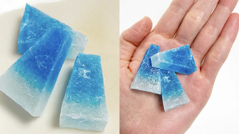 原材料名<砂糖(国産製造)、寒天/香料、着色料(青1)>