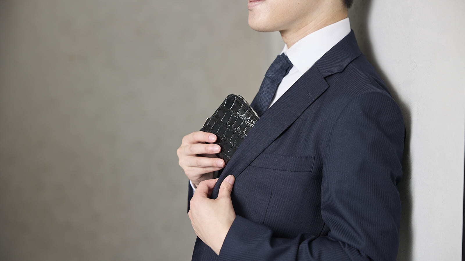 ▶辰年の今だからこそ持って頂きたい染色の匠が染めた希少なポロサスクロコダイル革を使った長財布