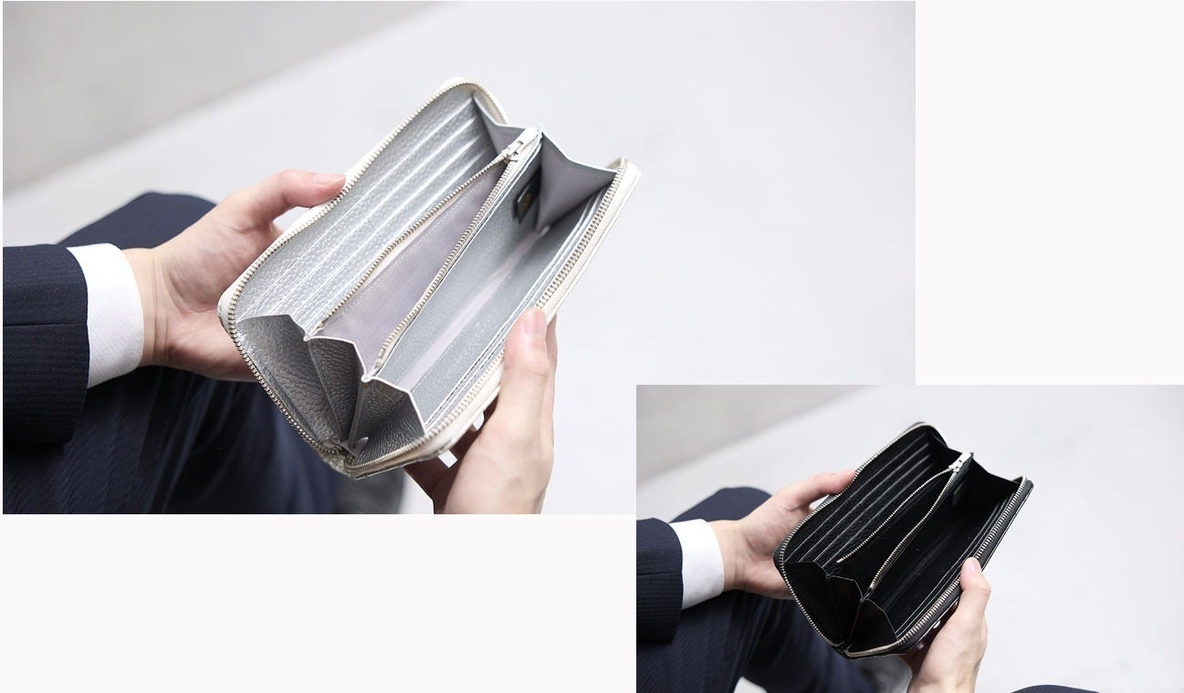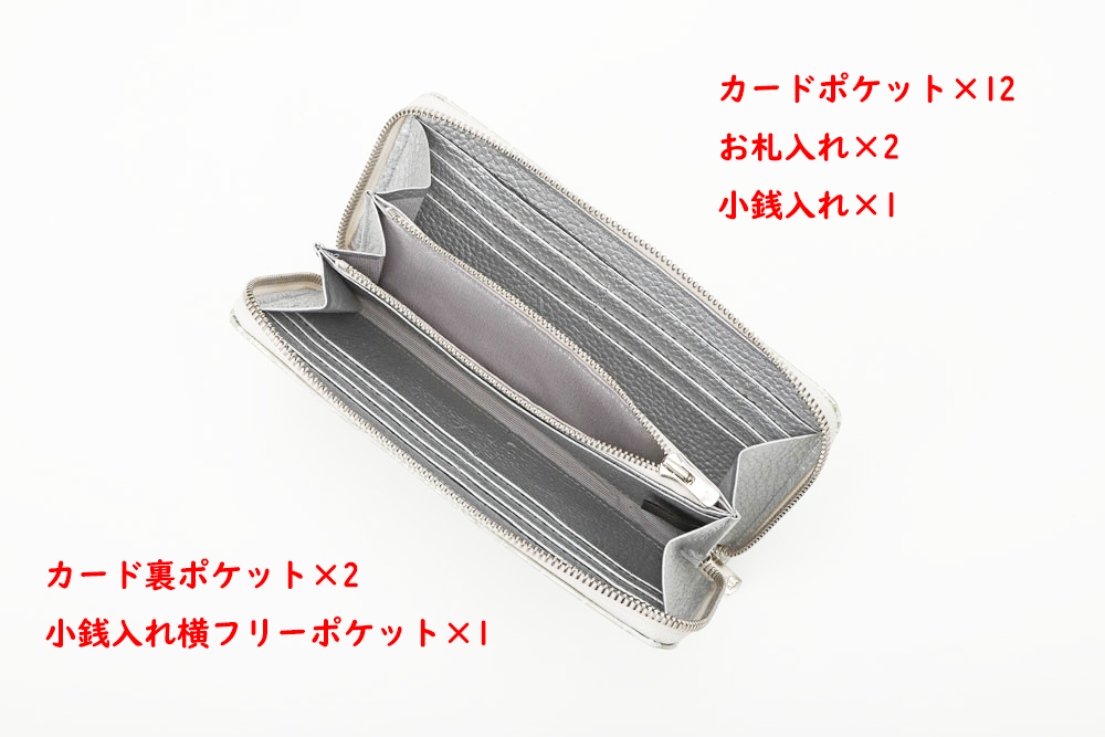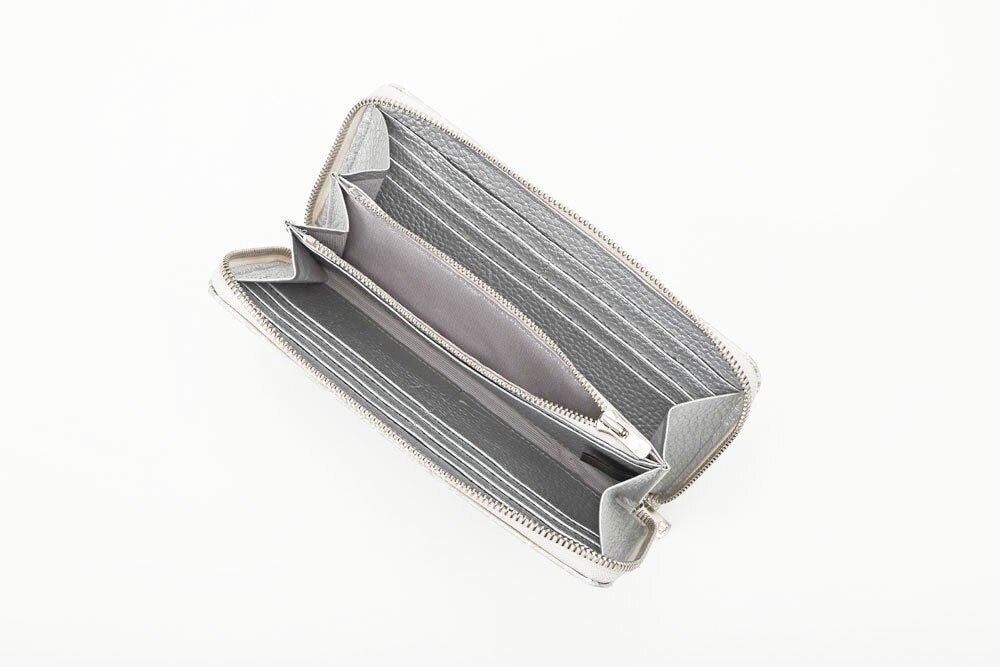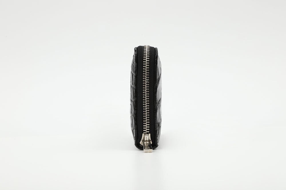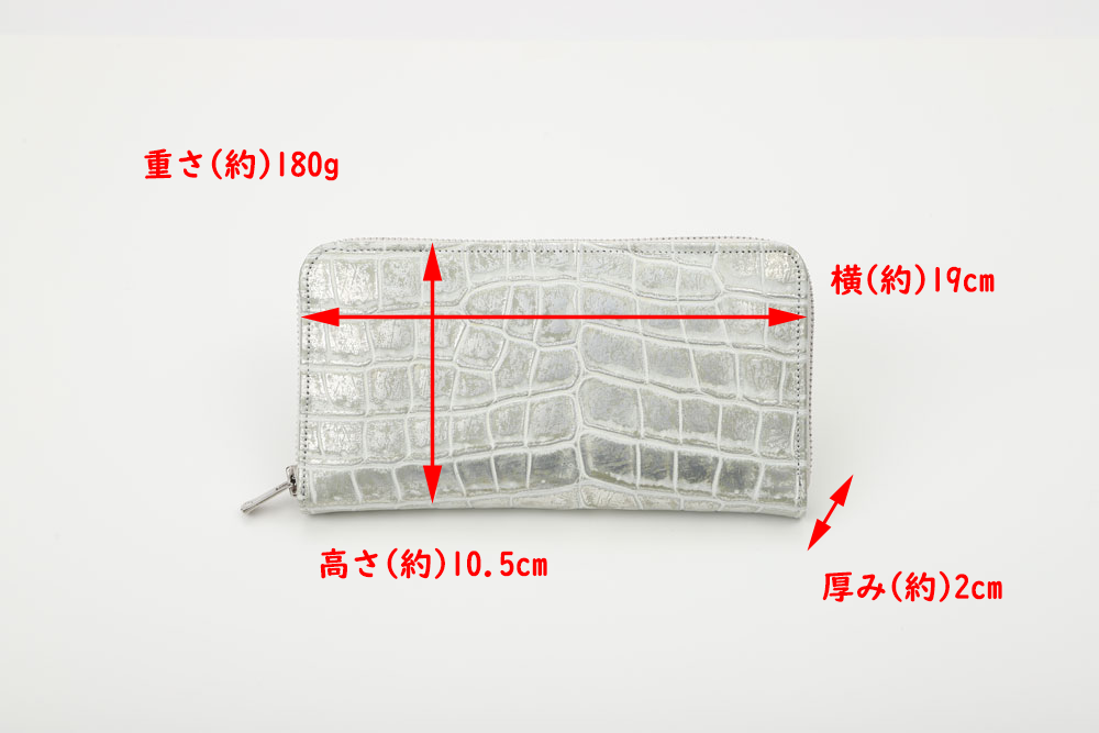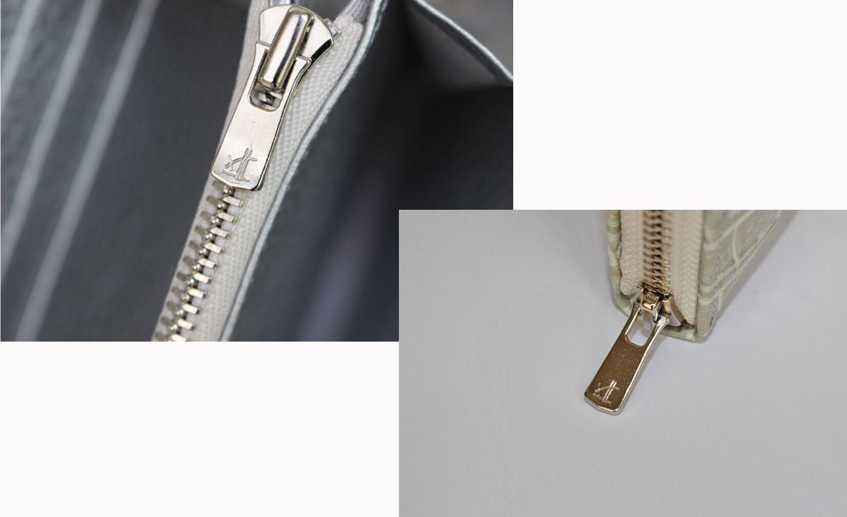 なめらかな滑りと耐久性を実現したひかり輝くシルバーカラーの金属ファスナーはポロサスクロコダイル革にピッタリです。
