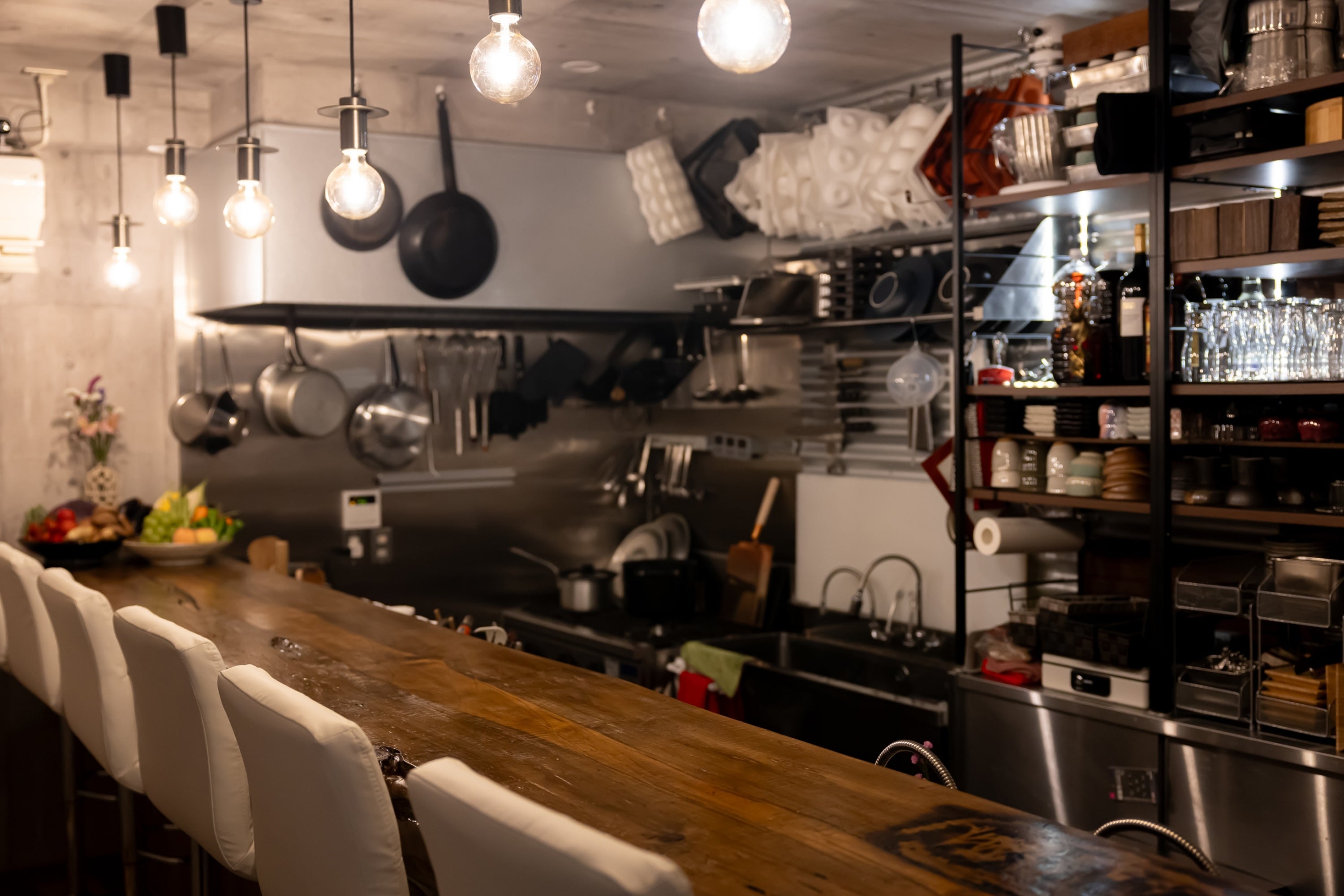 オープンカウンターで、お客様の目の前で調理を行い料理を提供する分、お客様との距離感は非常に近いです。