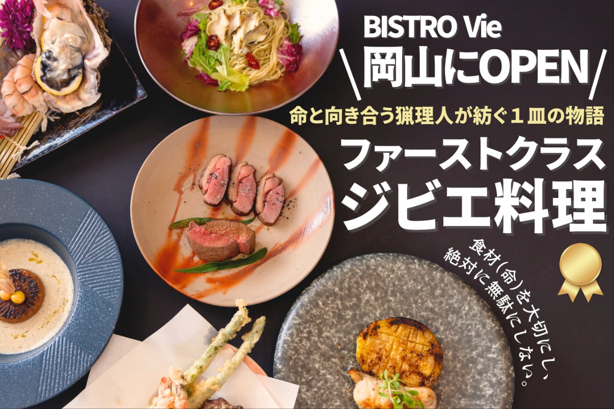 『BISTRO Vie』は岡山市田町にある飲食店で、鮮度が高く、適切な処理を行なったジビエ(猪肉、鹿肉)、鮮魚を素材とした料理を提供している飲食店です。