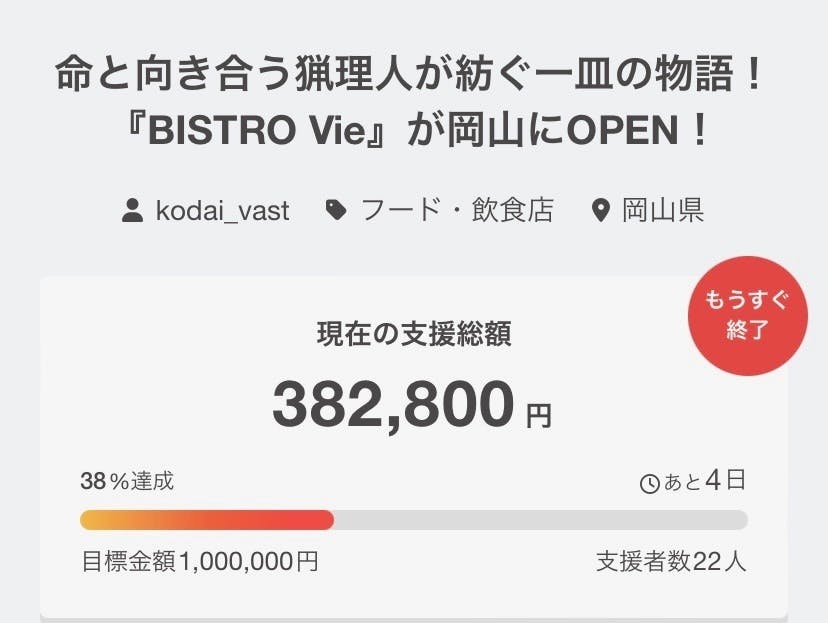 もしまだ応援をご検討いただいている方がいらっしゃいましたら、この機会にぜひご支援をお願いできればと思います。