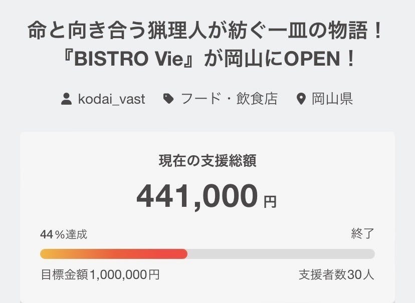 今回のクラウドファンディングを通じて、ジビエ料理への関心や当店のコンセプトに共感してくださる方々の存在を改めて実感できたことは、私たちにとって非常に大きな励みとなりました。