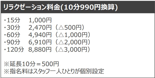↓『奥様』がリラクゼーション施術(90分コース=6,910円)※指名の場合は指名料発生