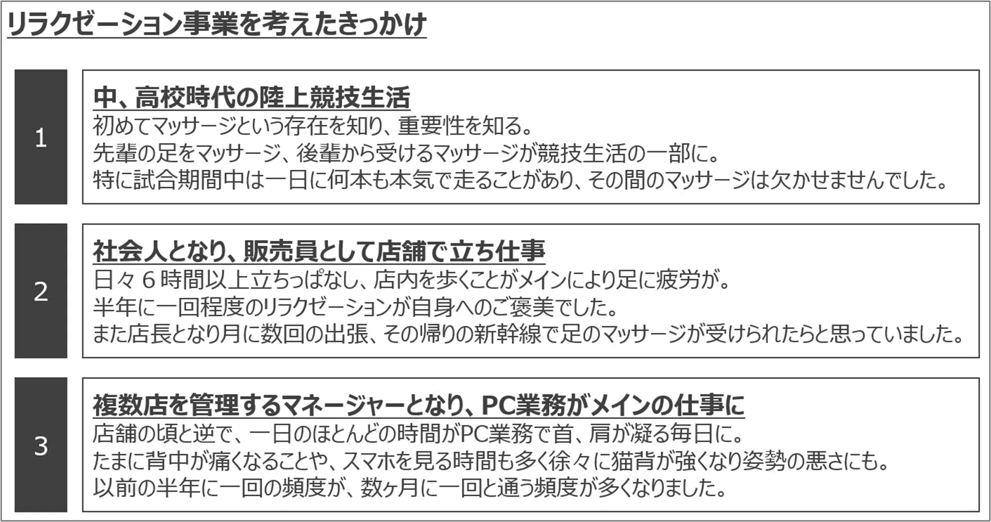 ■20年以上前からマッサージの大切さを実感
