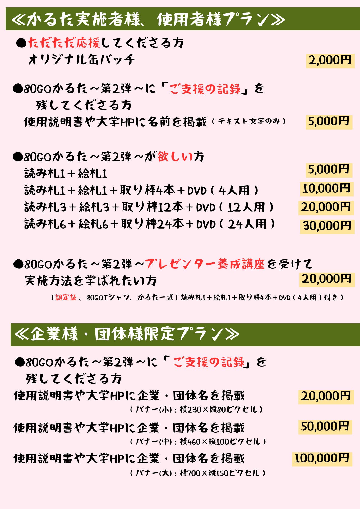 上記の特徴を持つ『80GOかるた~第2弾~』を多くの方々にご活用頂き、”『フレイル予防』や『人生会議(ACP)』に役立てて頂きたい”という学生達の想いを叶えるため、できるだけ安価で購入できる体制を構築することを目的としたクラウドファンディングに挑戦します。