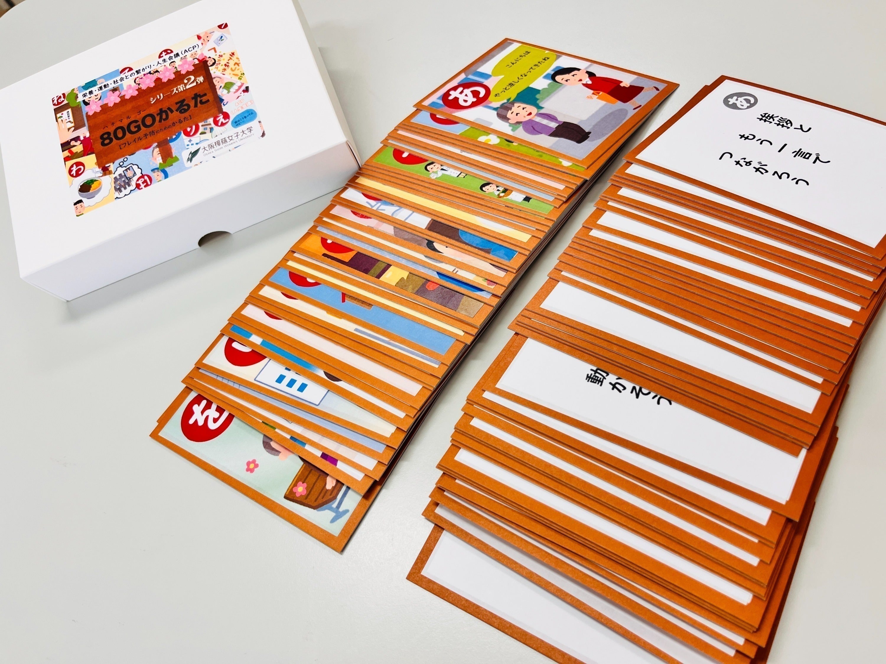 ※1:「80GO(ハチマルゴー)」:2022年4月に一般社団法人日本医学会連合から発表された、フレイル・ロコモ克服のための医学会宣言のキャッチフレーズです。本かるた及び本かるたを利用した活動は、日本医学会連合とは無関係ですので、本かるた及び活動についてのお問い合わせは、大阪樟蔭女子大学までお願いいたします。