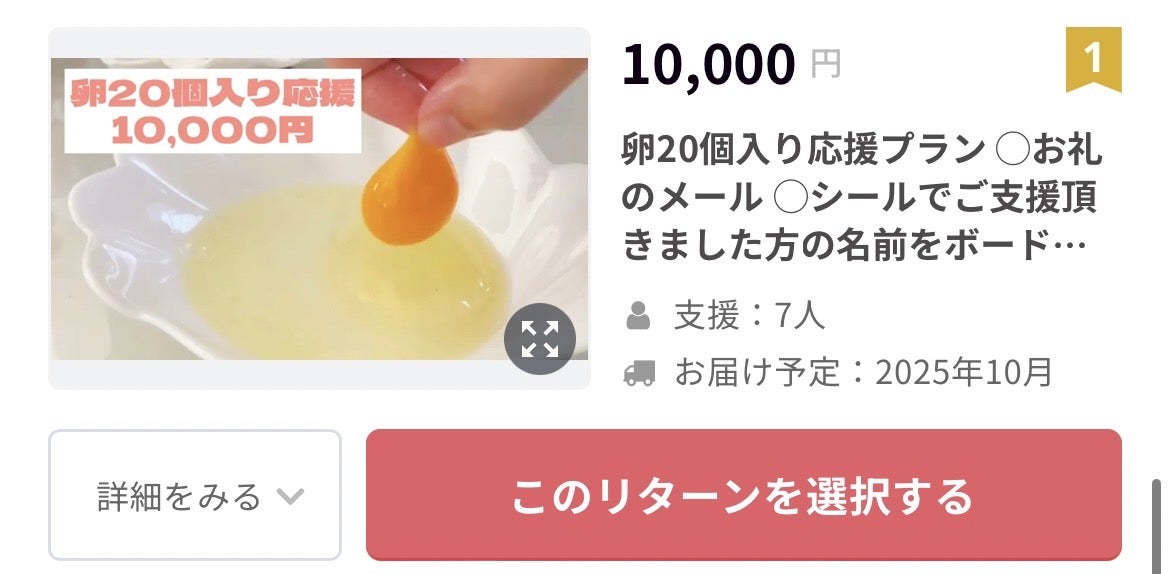 卵のリターンが付いてくるものがおすすめです!