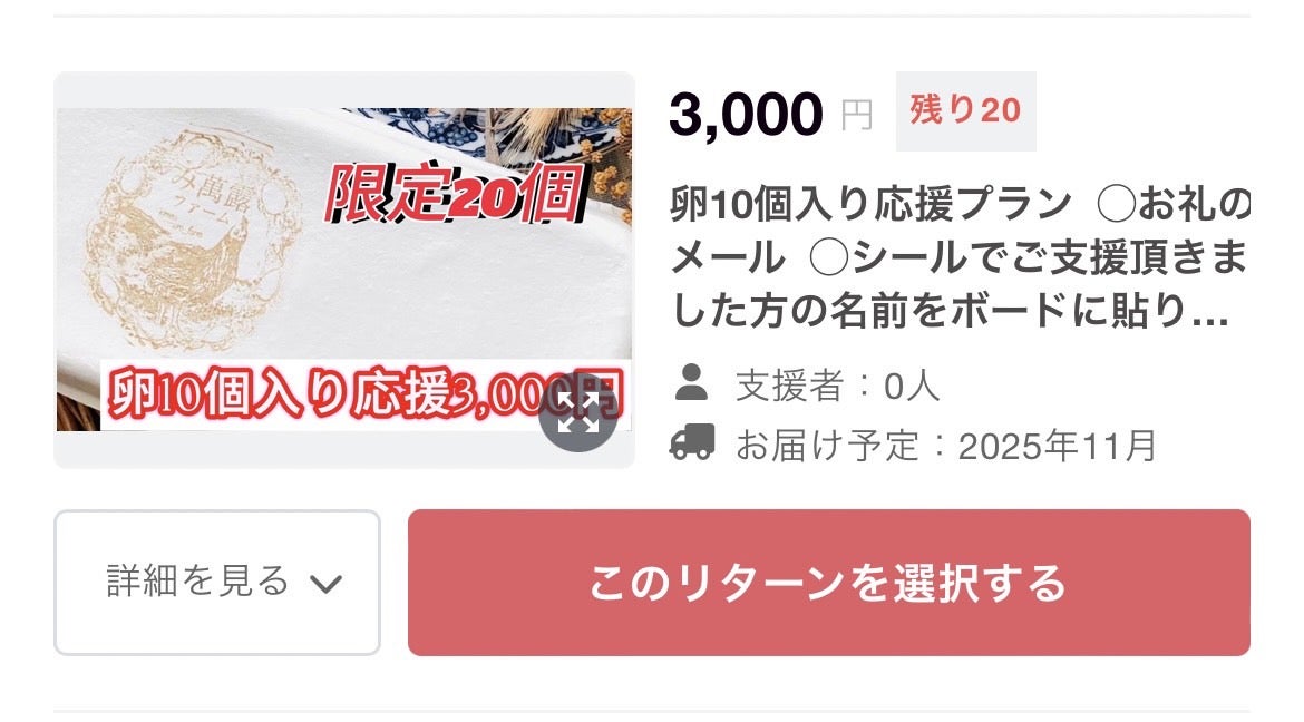 限定20個の卵10個入り応援3000円プラン