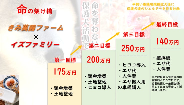 ですので今回、平飼い養鶏場を規模拡大していき保護犬活動に売り上げの一部を使っていき多くの命を救っていきたいと思い今回のプロジェクトを立ち上げました!!