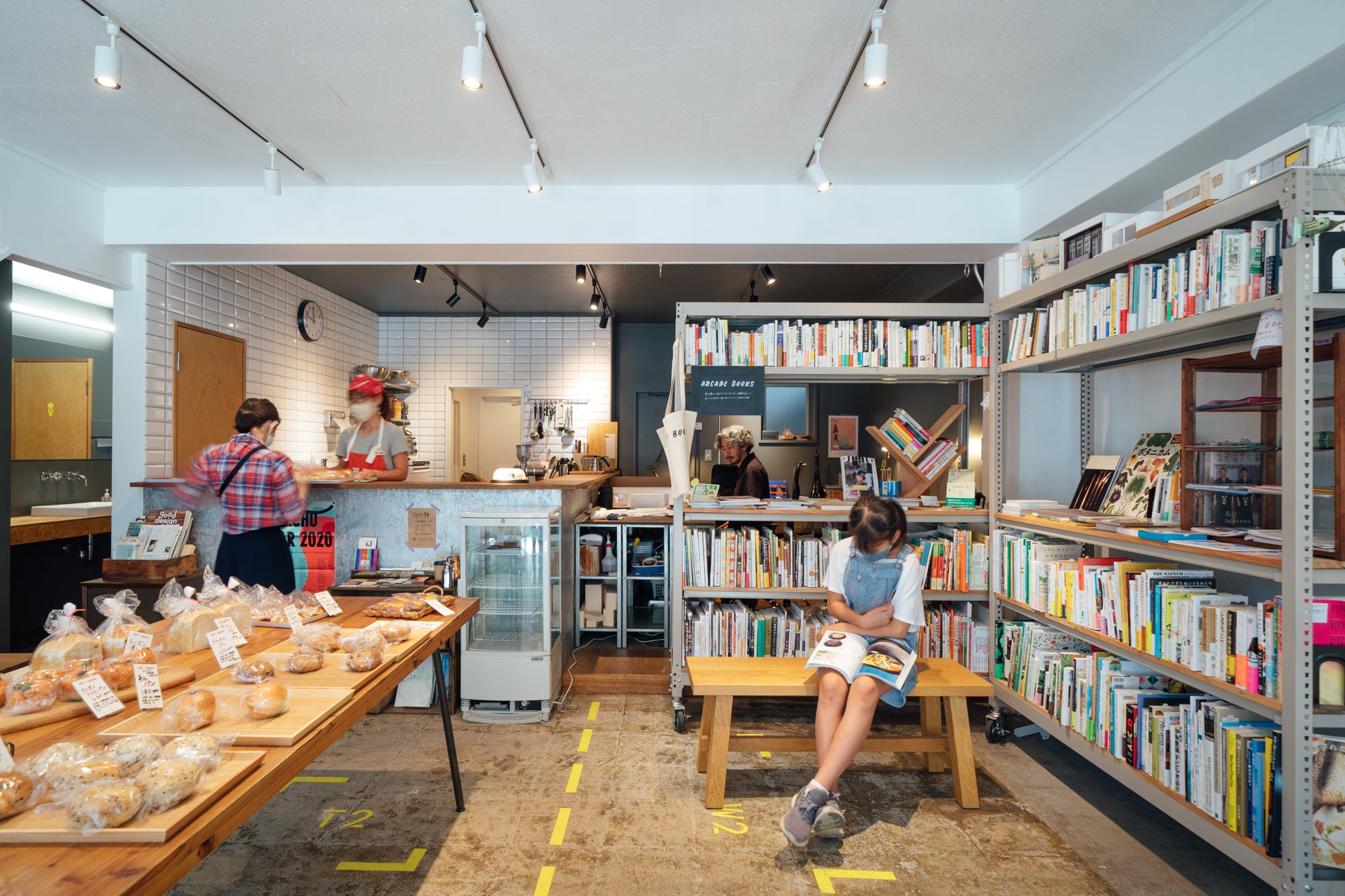 ②本や古道具などを扱う物販コーナーとイベントスペース ”アツマルHIROBA”