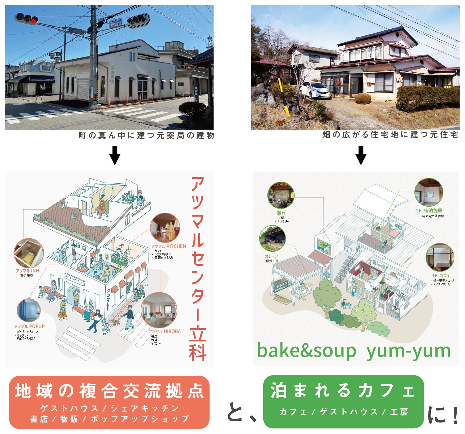 そして、今回の2つのプロジェクトはそんな活動や「町かどオフィス」での空き家活用の相談から生まれたプロジェクトなのです。