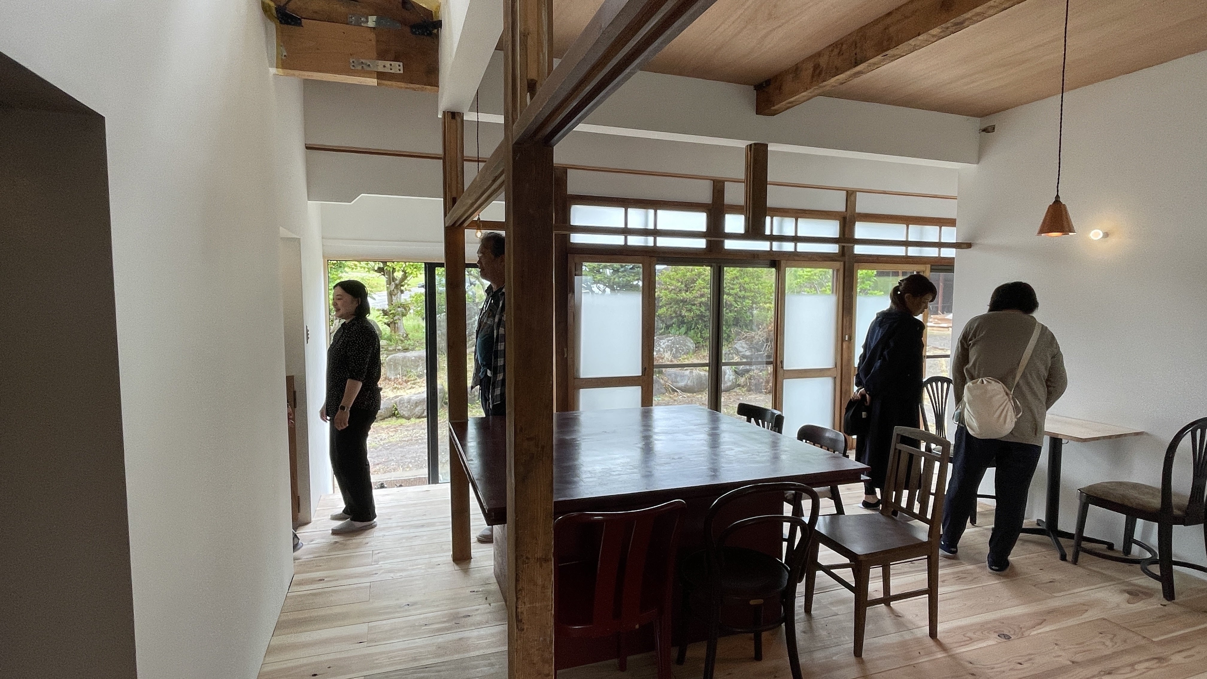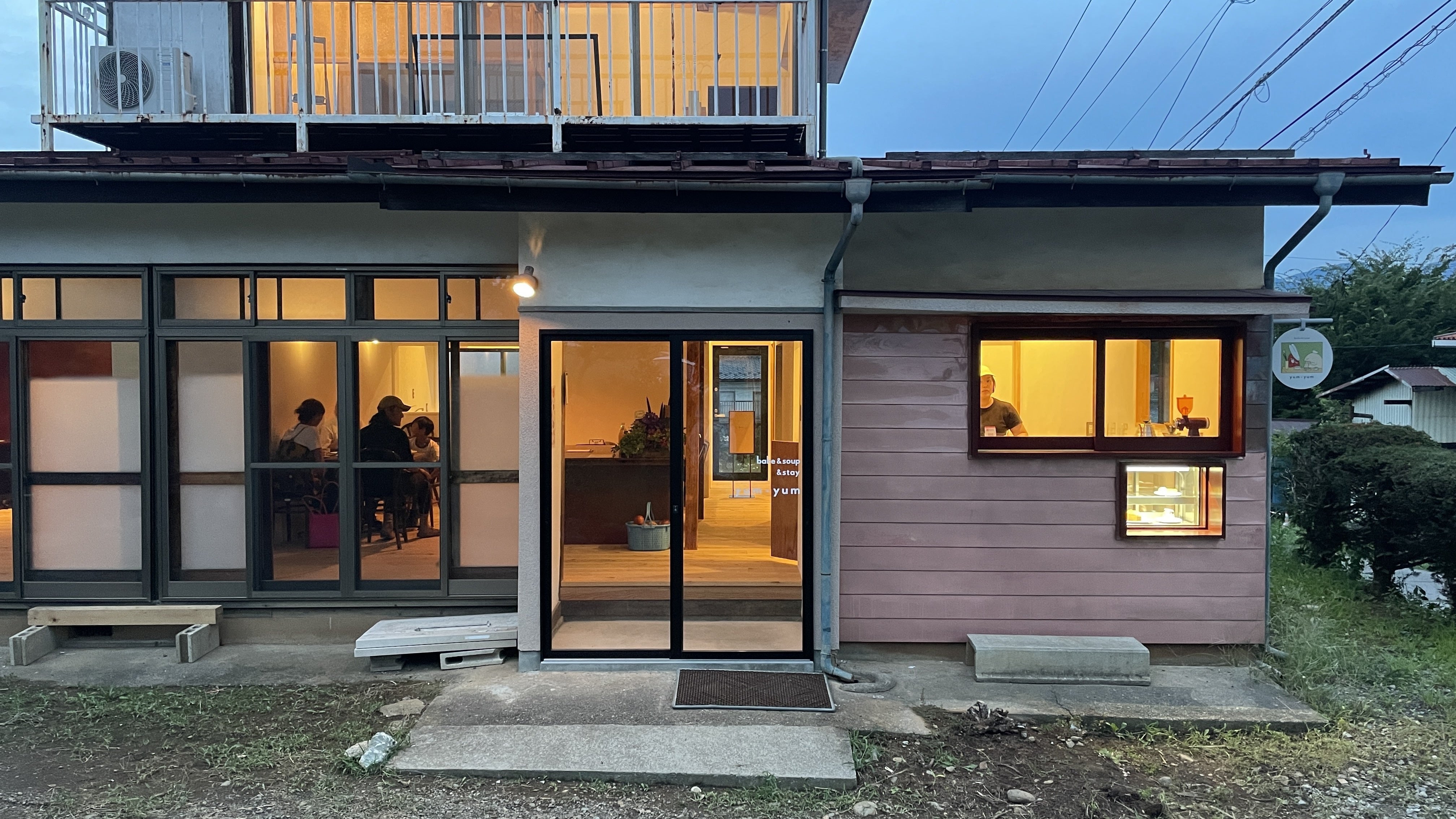 いよいよ9月となりまして、立科町エリアリレーションプロジェクトの2本柱の一つである”bake&soup yum-yum”が8月末にプレオープンという形で先行始動しました!最初に物件と出会ったのが3年前、、やっとここまで来れたという感じです。今回から2回に分けて、”bake&soup yum-yum”のできるまでのご紹介をしたいと思います。”bake&soup yum-yum”は、もともと空き家バンクの登録相談から始まったプロジェクトで、地域おこし協力隊として活動をしていたときに「実家がもう空き家になるから”賃貸”に出せないか」と所有者さんからご相談頂いたのが発端でした。空き家バンクに登録をする、という相談で出会った物件立科町には空き家が250件近くあるのですが、空き家バンク(※)に登録してくださる物件というのはまだあまり多くなく、さらにその中でも賃貸可能な物件というものは当時ほとんどありませんでした。「自分の家を人に貸す」という事に抵抗がある方や、「早く手放したい」と思う方、また逆に「手放せないし自分のところは空き家じゃない」とお考えの方も多くいて、なかなか「賃貸」という選択肢が出てこないという実情があります。ただ、移住をご検討される方などは、、まずは「賃貸」をすることでとの関わりを作りたい、と考える方が多く、なかなか物件所有者さんとの間でマッチングしないのが悩みの種でした。空き家バンク情報を希望者に提供し、空き家のマッチングに繋げていますですので、なんとか空き家賃貸の良い活用方法を作って、町内の空き家所有者さんに向けて発信をしたいと思い、自らこの物件を借りることを決めて、カフェと宿泊施設を作る計画を始めたのでした。(※空き家バンクとは、地方公共団体が空き家や空き地の情報を提供する制度で、空き家や空き地を所有する人が売却や賃貸を希望した場合に、その情報を登録し、利用希望者に提供する制度です。)借りた物件は元々は住居用の物件でした手前に畑と隣には離れの小屋が付いていて、奥には浅間山も見えます物件を「購入」ではなく「借りる」ことで、空き家を活用するための初期投資を工事費に多く回せるようになります。老朽化した母屋にかかる工事費(耐震改修から、設備の入れ替え、内装に至るまで)の全ての費用を借り主である僕らが負担する代わりに、10年という期間で「超」がつくほどの低価格で賃貸させて頂いています。所有者さんからすれば、使い道があるわけではないけど、思い入れがあるので手放したくない、という思いは生き、借りる側からすれば、建物を使う上でのコストを、設備や自分たちで使う部分に集中できます。賃貸物件の改修なので大家さんも楽しみにしてくれてますまた、カフェと宿泊施設という事業をやることで、投資した分の費用も回収していくことができます。元々僕らがカフェや宿泊施設をやりたかったというのもあるのですが、例えば自宅用の物件の一角で小さなコーヒースタンドをやったり、雑貨屋さんをやったり、「商い」を生活に取り込むことで、家にかかったお金の回収を見込むことができるようになります。さらに地域とのつながりを作るきっかけも出来るので、空き家の活用をこれから検討している方には「暮らしと小商いのセットでの活用」をお勧めしています。さて、建物の工事ですが、残置物の片付けや床や雑壁の解体など、できるところは自分たちで行いました。地域おこし協力隊の仲間などにも手伝ってもらい、改修工事の様子は立科町の地元ローカルテレビ局で放送し、地域の人たちにも情報をお届けしました。この解体がなかなか大変で、砕けた壁や木材など、いわゆる「産廃」が想像以上に出てきます。いかに建物が、きれいに、無駄なく作られてるのかが、解体の産廃を見たときにとてもよくわかります。協力隊の仲間と解体中ケーブルテレビで工事の内容を発信しましたまた、解体してみると、建物の躯体の老朽化している部分がよくわかります。なのでここから先は専門の方にお任せし、本体工事は、アツマルセンター立科でも一緒に進めている三矢工業さん、耐震改修工事は横浜の構造設計事務所SCALA Design Engineersの村上さんにお願いして、盤石の体制で進めていきました。本体工事は三矢工業さん(左側)、耐震改修は構造の専門家、村上さんに(右側)建物自体が基礎の部分から一部傾いており、外壁にもクラックが入っている状態でしたので、今回の改修では建物の基礎から補強をし直し、新たに耐力壁という壁も追加しています。外壁に入っているヒビ元々和室が二部屋続いてるお家でしたが、この真ん中に新たに壁を追加することで、耐震性を向上させます。二部屋が続いている空間も広く見えて良かったのですが、壁ができることで2つの場所が生まれるため、雰囲気の異なるスペースを作ることにしました。元々は和室が続いてました。このままでも気持ちのよい空間でしたが、耐震上問題アリでした新たに部屋の真ん中に壁が作られ、手前