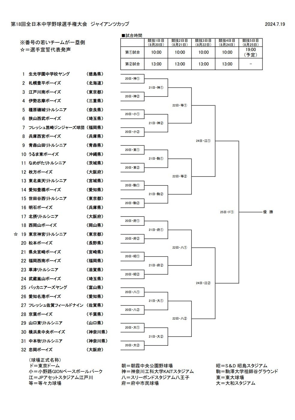 7月19日に本戦の組み合わせ抽選が行われました。我々バッカニアーズヤングは、7月20日「スリーボンドスタジアム八王子」の第1試合、愛知の強豪「愛知名港ボーイズ」さんとの対戦が決定いたしました。大会までもう少し!!本戦に向けて日々練習を積んでいます。引き続き、バッカニアーズヤングのご支援よろしくお願いいたします。↓↓↓大会の情報はジャイアンツ公式ホームページにて随時公開されます↓↓↓ 読売ジャイアンツホームページ