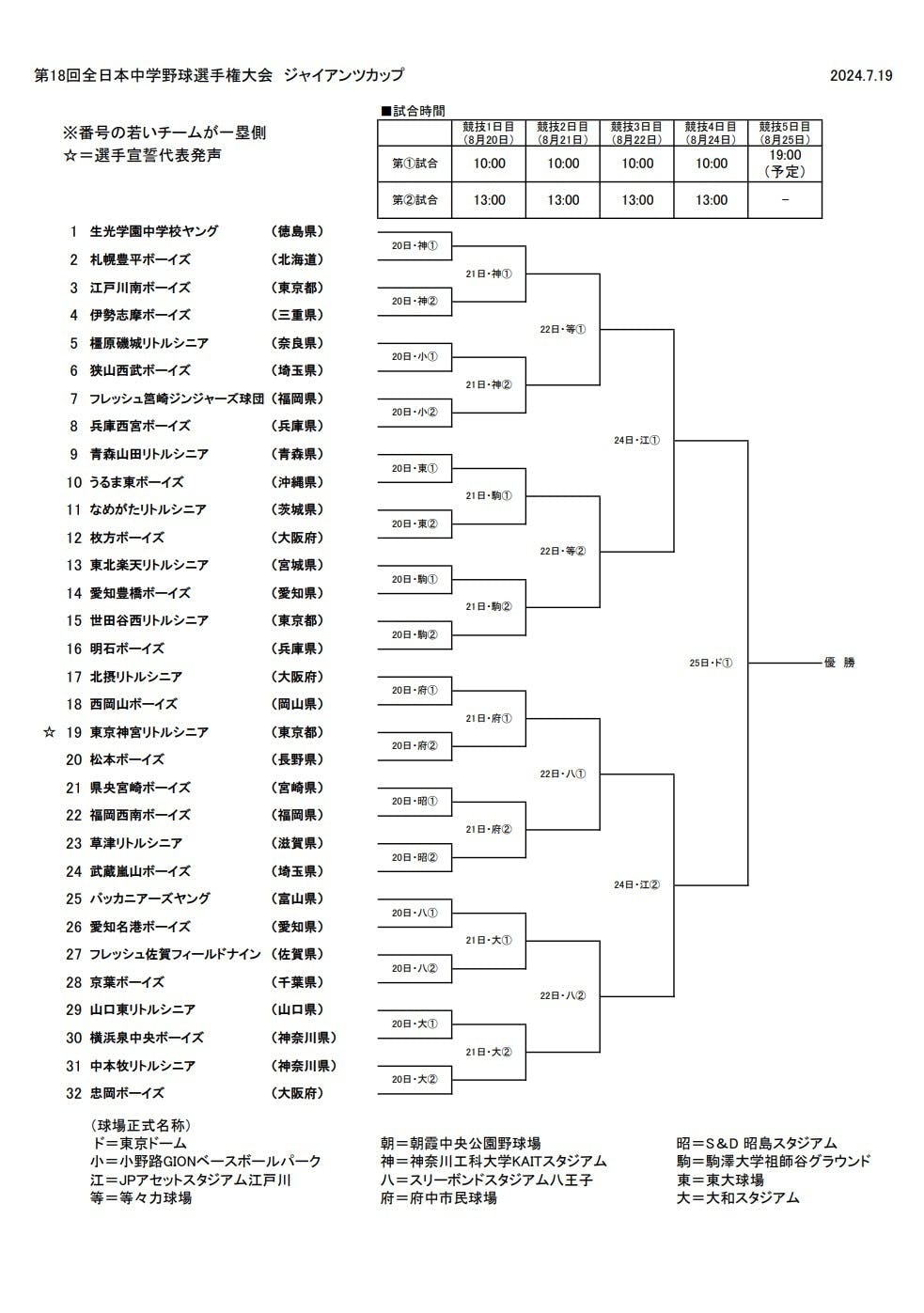 我々バッカニアーズヤングは、7月20日「スリーボンドスタジアム八王子」の第1試合、愛知の強豪「愛知名港ボーイズ」さんとの対戦が決定いたしました。