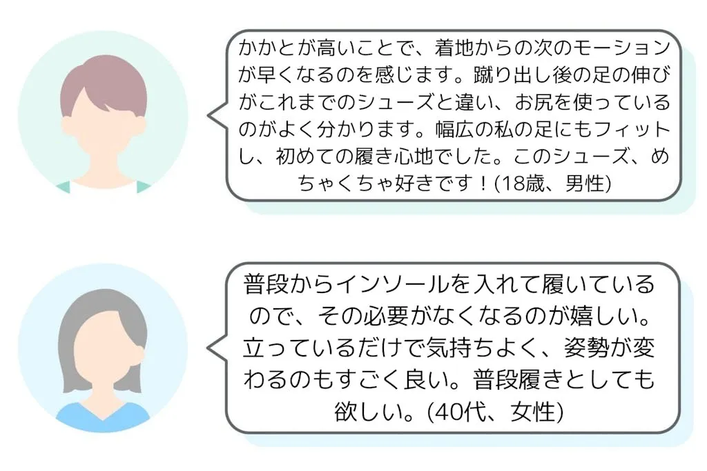 その中でも今回は、お尻の筋肉を意識できるようになると解消できる問題は多くあると知り、シューズの開発に着手しました。