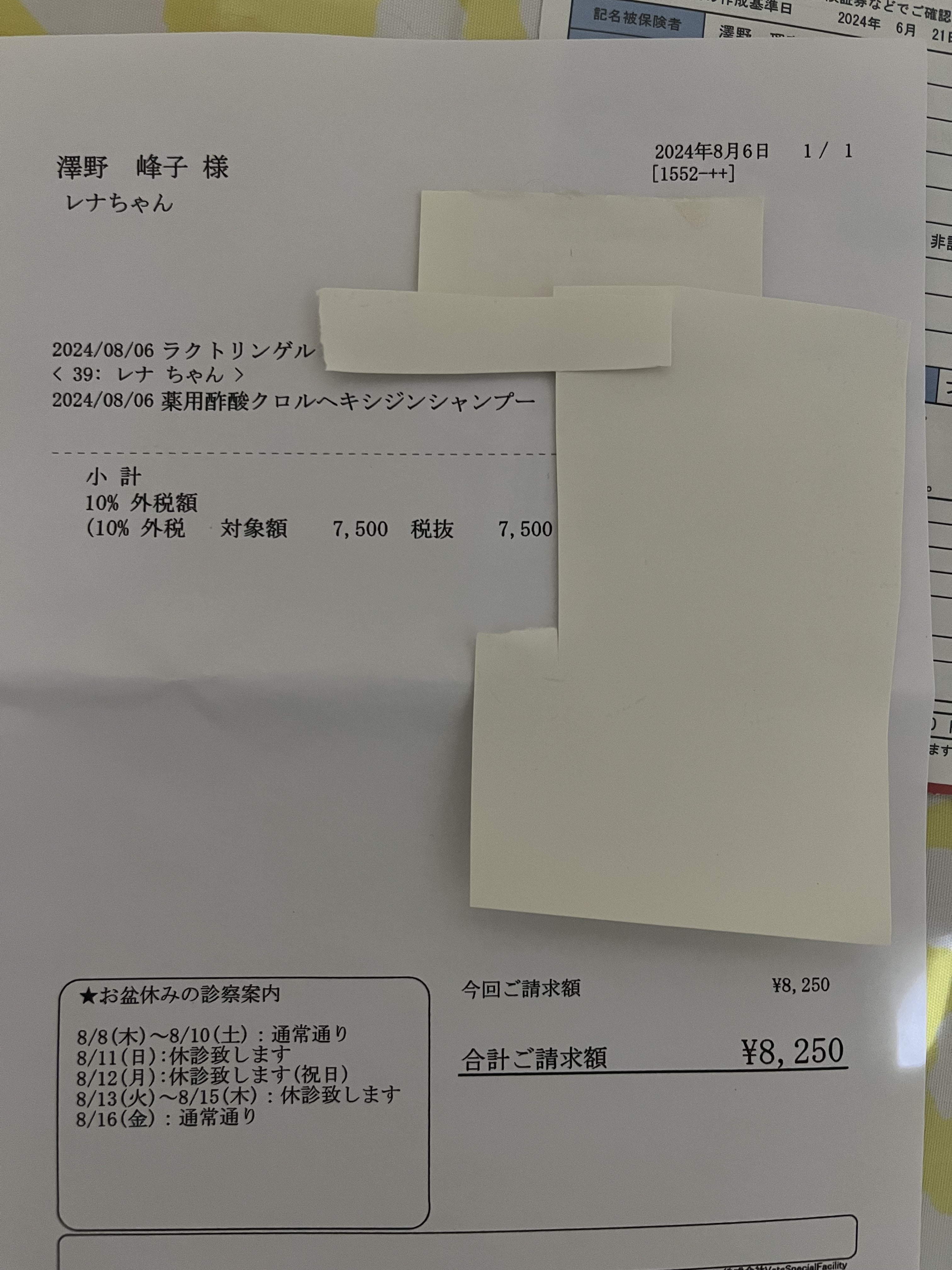 それと犬のレナちゃんが昨日トリミングに行った時に『しっしんが出てますよ』と言われたのでシルクのお迎えの時に診てもらって今回はシャンプーを出していただきました。
