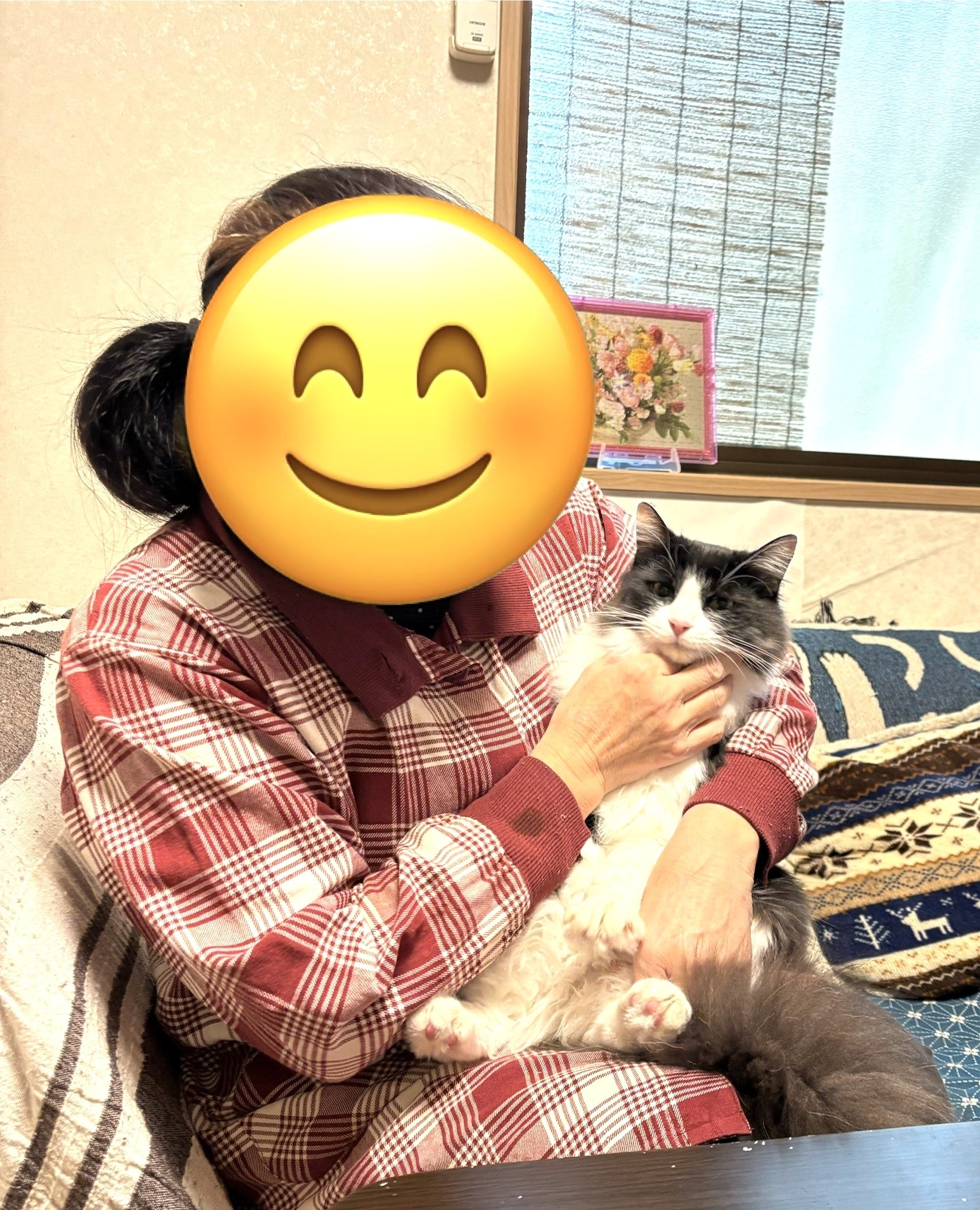 先住猫のチョコちゃんがストレスを感じてるようで気になりましたが、里親さまから『少しずつ慣れてくれてます』とのお言葉をいただきチョコちゃんも私たちの前に姿を見せてくれたので安心しました♡