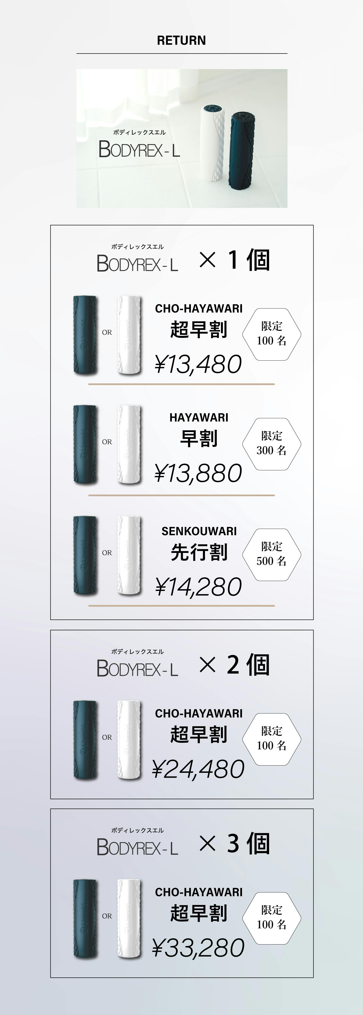 BODYREX-Lは原型モデルBODYREXの異なったバージョンの製品です。新しい仕様のBODYREXをいち早くご紹介させていただいております。