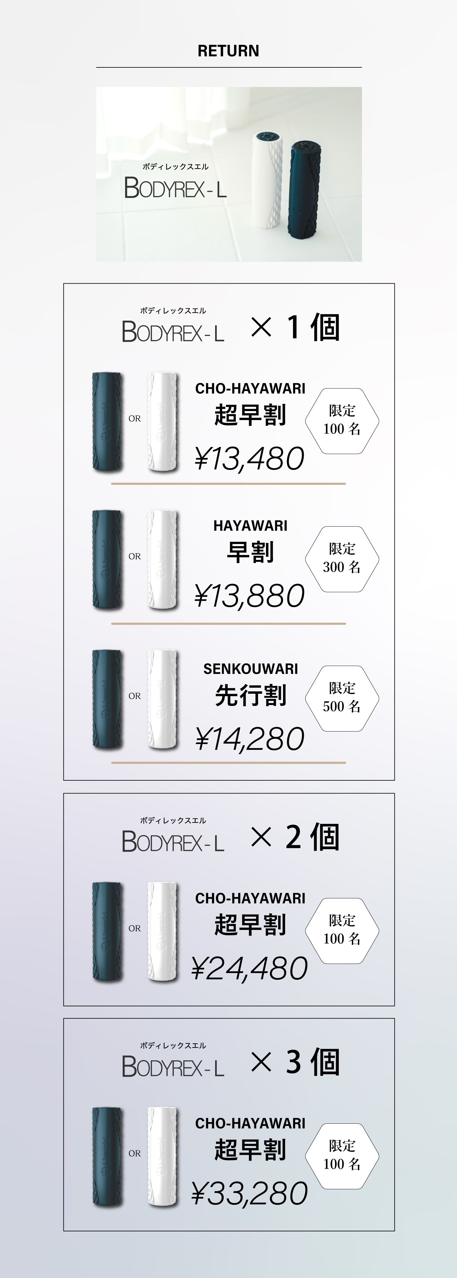 BODYREX-Lは原型モデルBODYREXの異なったバージョンの製品です。新しい仕様のBODYREXをいち早くご紹介させていただいております。