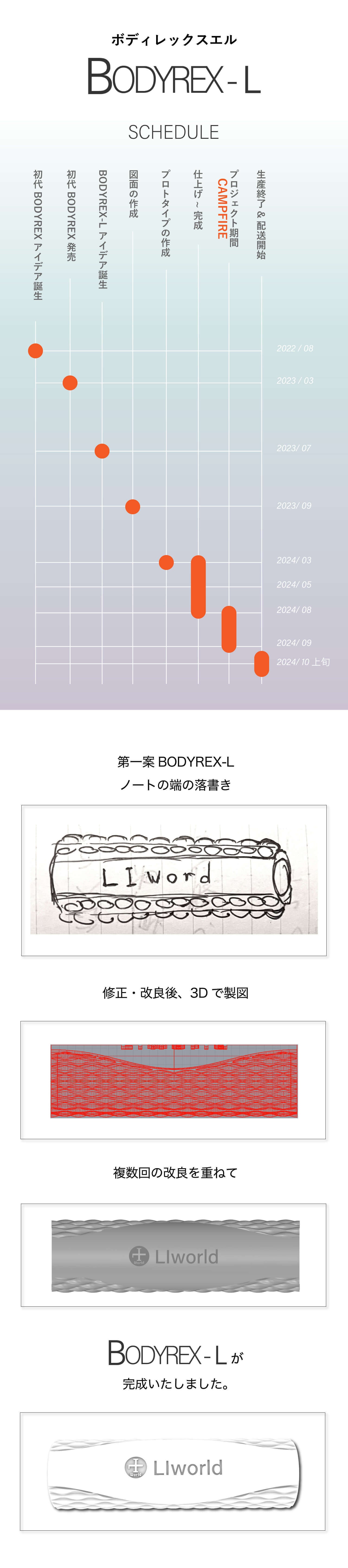 元々当社の商品として販売をしていたBODYREXという商品がありました。BODYREXは多くのお客様から好評をいただいており、身体のケアを行うグッズとして現在も販売をさせていただいております。しかし現行のBODYREXではできないアプローチ方法がまだあると思い、異なった素材で異なった形状の電動フォームローラーの企画を開始し始めたのが本プロジェクトのきっかけです。