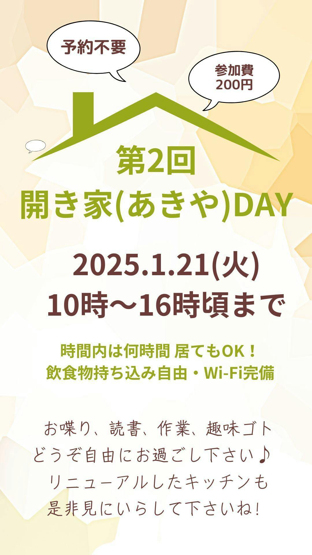 そして、上記の動画内にもありますが、来週21日(火)は「第2回 開き家(あきや)DAY」です!
