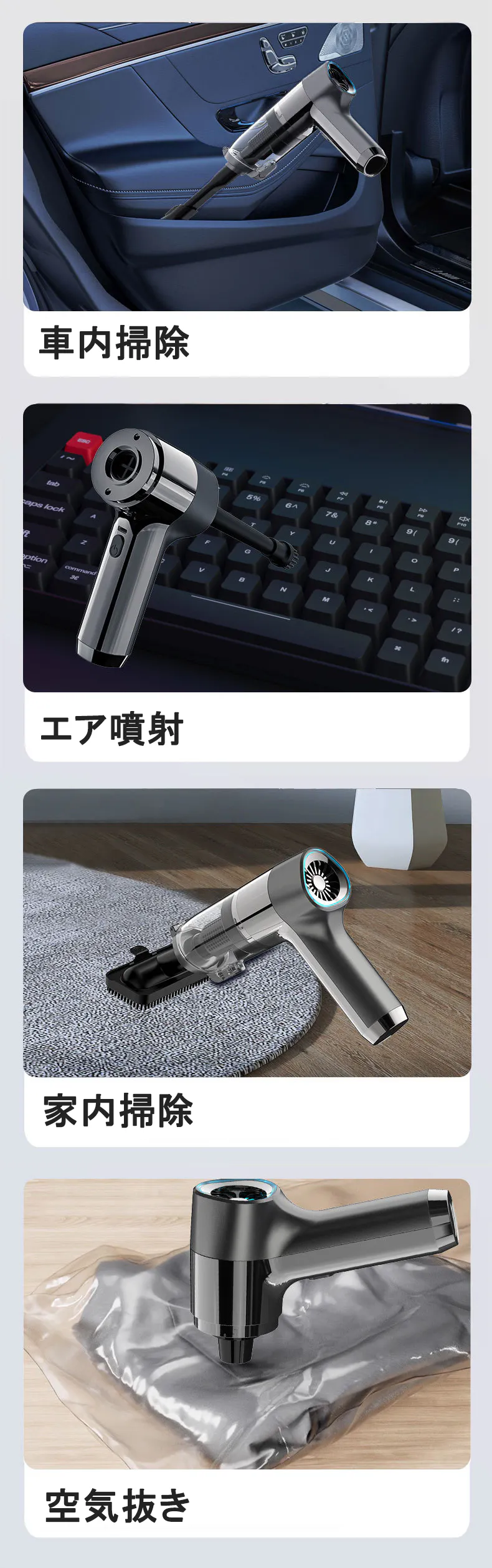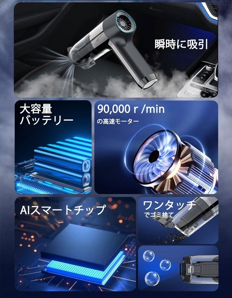 エア噴射&驚異的な吸引力であなたの車をピカピカに!