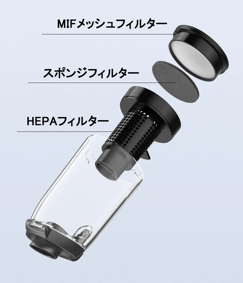 高耐久で高効率な多層フィルター構造を採用。ダストボックスとフィルターは水洗い可能。何度でも繰り返しご使用可能です。