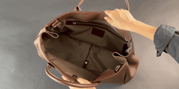 本革なのに18.45Lも収納できるので、1泊2日の出張や旅行は余裕で入るサイズです!この大容量サイズのバッグを本革で作るとなると、かなりの量の革が必要となるので、今回の販売価格で販売するのにとても苦労しました。(汗)