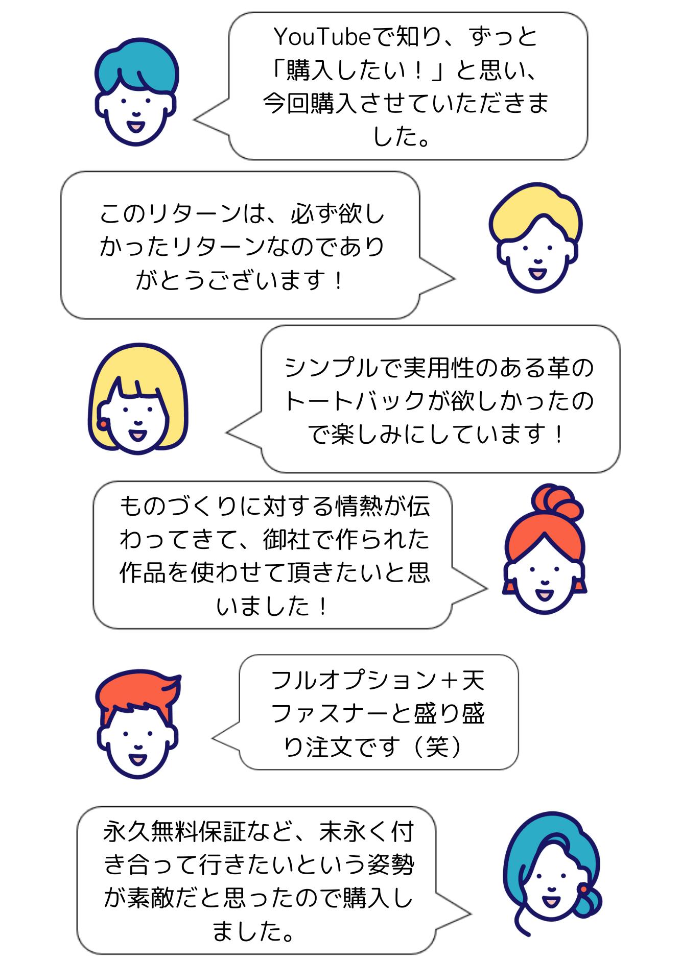 「商品は職人一同、力を合わせて製作しています。皆様に喜んでいただける商品をお届けできるよう、僕が責任をもって、頑張ります。」(職人 千秋)