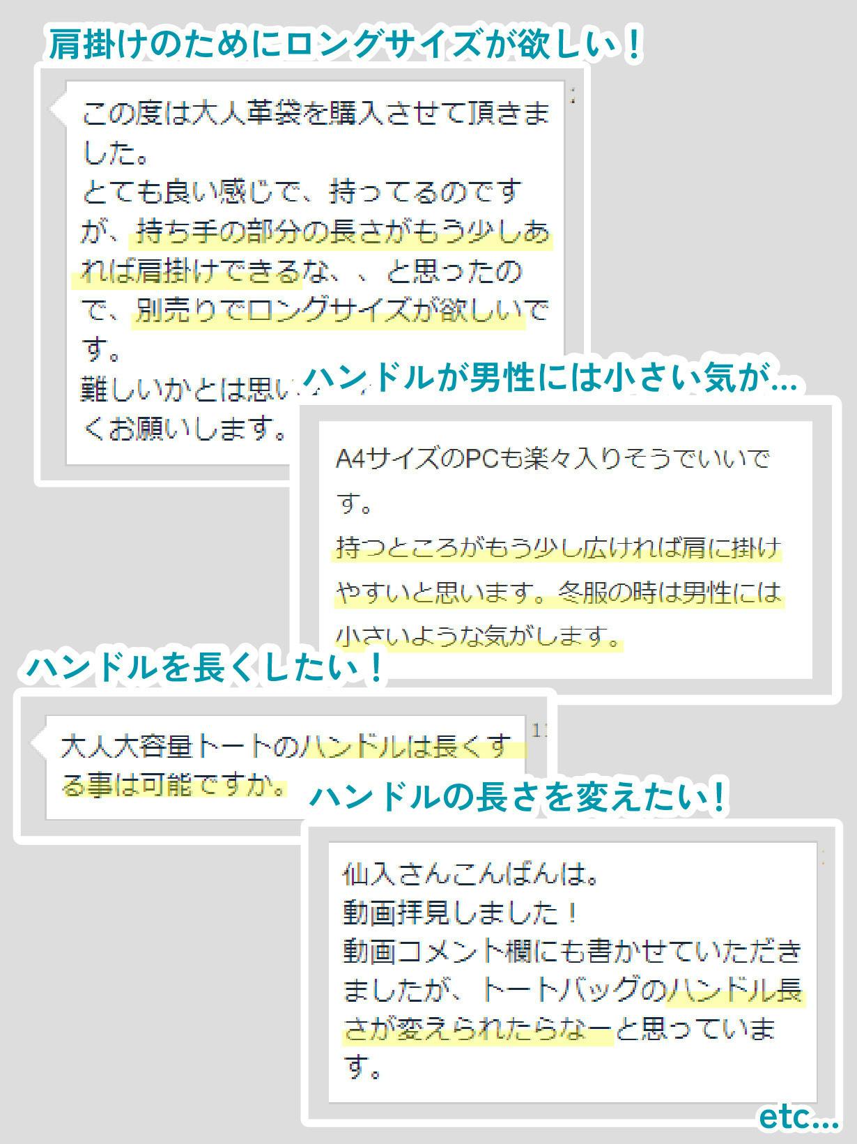 嬉しいお声のほかにも、お客様から、ハンドルについてご意見やご要望がたくさんありました。
