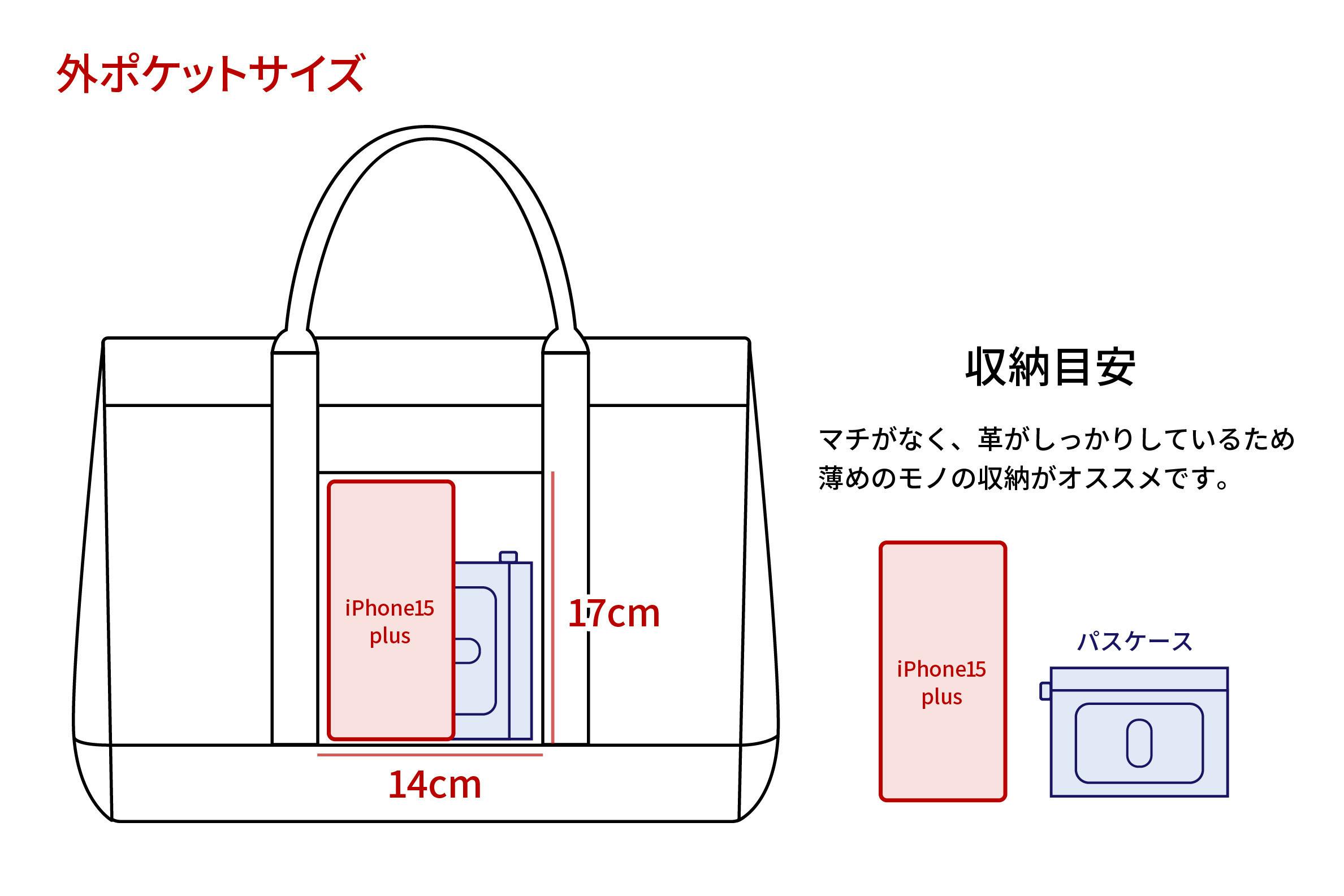 外ポケはスマホや定期入れを入れたいから、ファスナーポケットは名刺入れなど仕事に関係のあるものを入れるため、だそうです。
