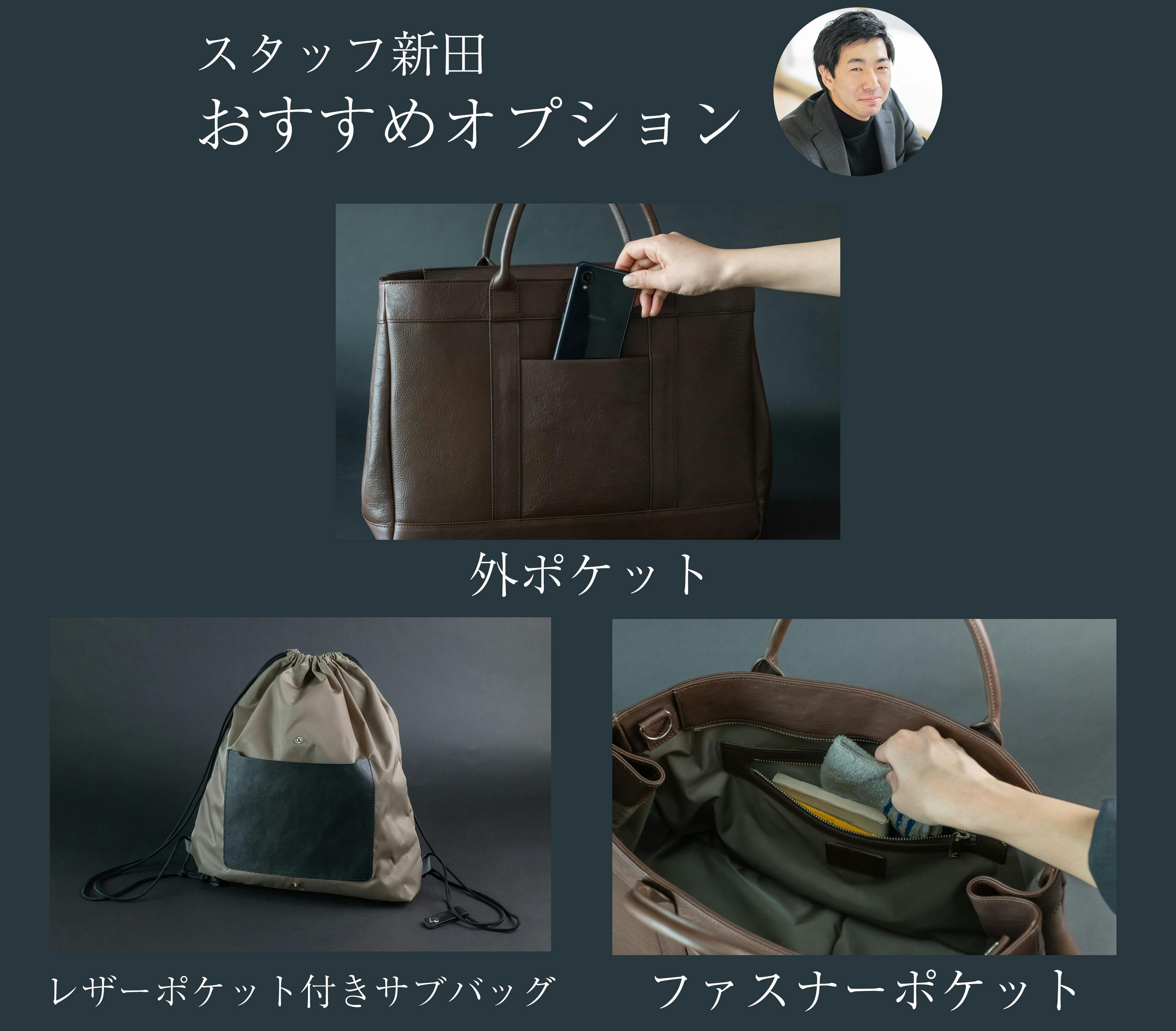 ・レザーポケット付きサブバッグを追加(+6,000円)