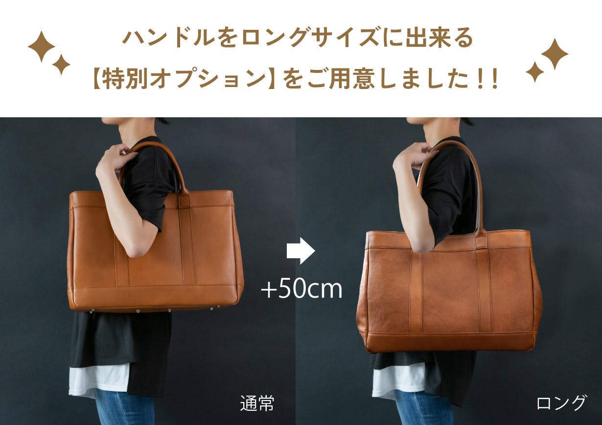 肩掛けで使いたい人の声にお応えし、ハンドルをロングサイズへ変更するオプションをご用意しました。