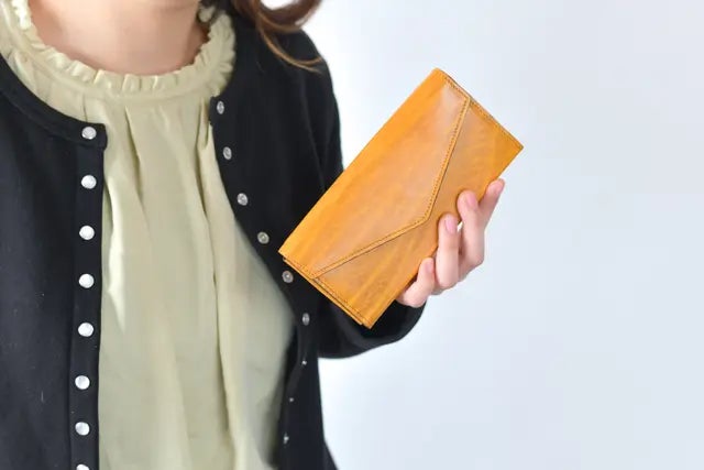 天然皮革(本革)の圧倒的な魅力は、長く使い続けることができることです。合成皮革(合皮)は使用していると加水分解などが原因で、早いものだと1年もせず、破れたり、ボロボロになってしまうことがあります。「極小長財布Ficelle-フィセル-」に使用している革は本革です。丈夫なので、長くお使いいただく事が出来ます。
