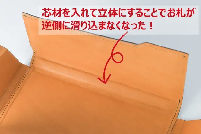 底に芯材を用いてお札ストッパーを作ったことにより、紀くんが懸念した問題を解決することができました!!