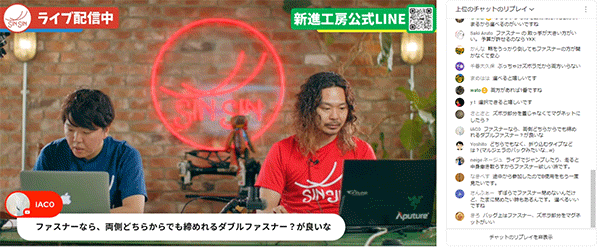 新進工房のYouTubeチャンネルにてライブ配信を行い、チャット欄やアンケート機能を使って4000人以上の方から「極小長財布フィセル」を作るにあたって様々なアイデアをいただきました!