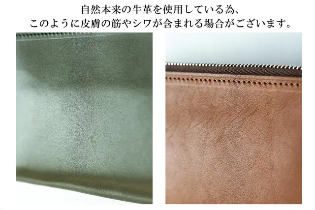 天然皮革(本革)の圧倒的な魅力は、長く使い続けることができることです。合成皮革(合皮)は使用していると加水分解などが原因で、早いものだと1年もせず、破れたり、ボロボロになってしまうことがあります。「極小長財布Ficelle-フィセル-」に使用している革は本革です。丈夫なので、長くお使いいただく事が出来ます。