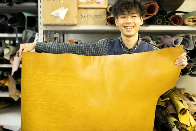 新進工房の工房内には常時100種類以上の革があり、毎日革を触っていると、季節によって革の仕上がりや風合いの違いに気づきます。1年間に1万個以上の革製品を自社工房にて製作しお客様のもとへお届けしています。今回は、シンプルで男性、女性から人気の高い「ルガトーレザー」を選びました!