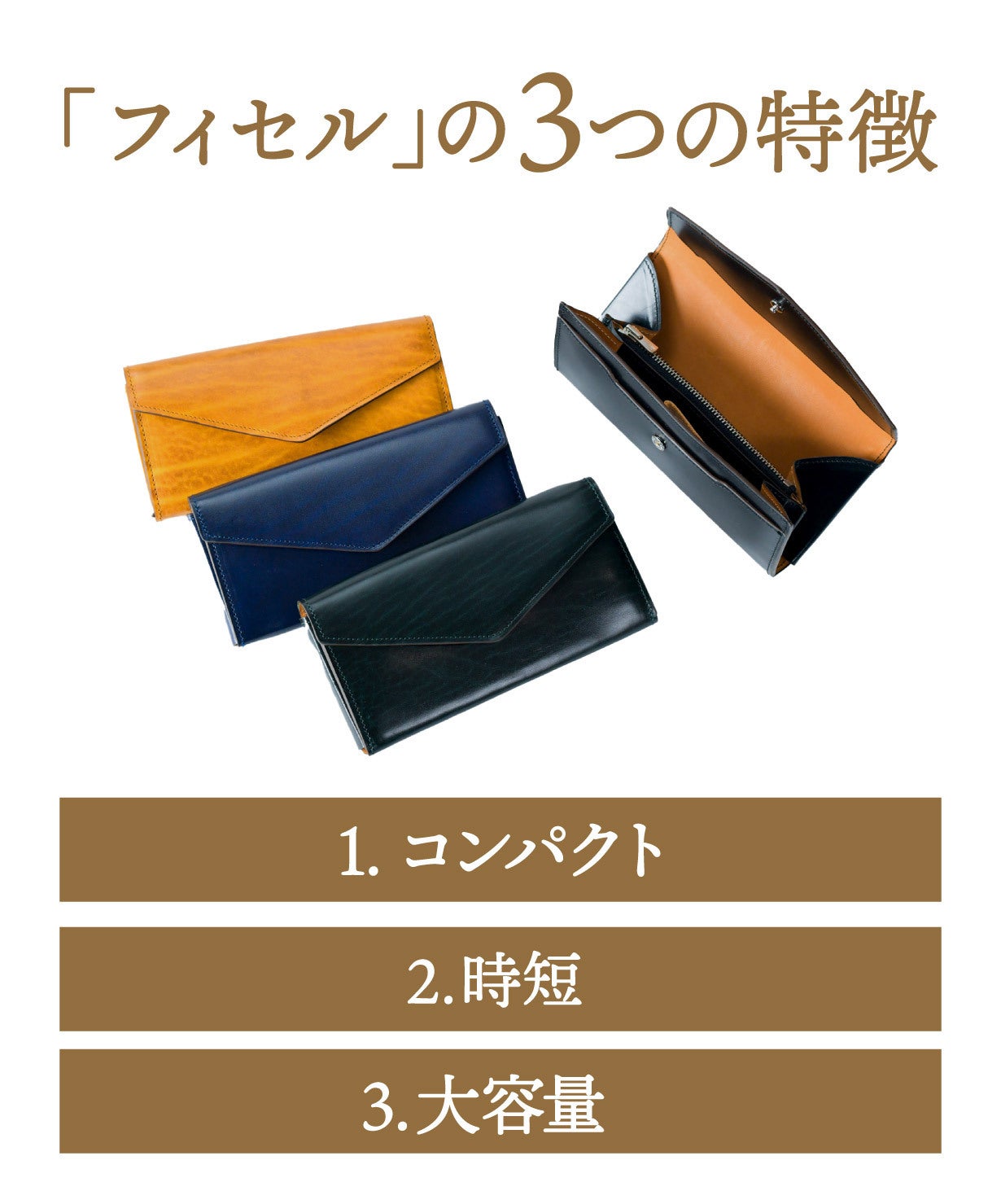 長財布の魅力はなんといっても収納力。従来のフラップ長財布では無駄になっていたスペースを削っただけなので、コンパクトなのに大容量を実現することができました。お札が大量に入るところが「極小長財布Ficelle-フィセル-」の特徴です!