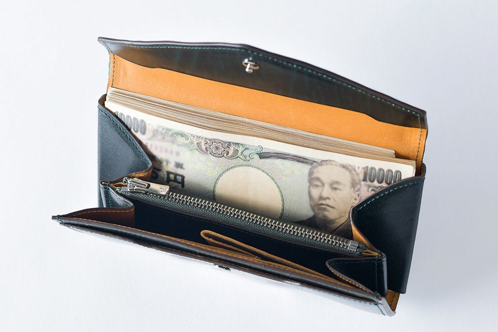 ①大量にお札を収納できるの極小長財布②革の宝石と呼ばれる欧州の高級牛革「ルガトー」使用。③【国内で生産】職人が型紙作りから、裁断、縫製まで一貫して国内工房で手作りしています