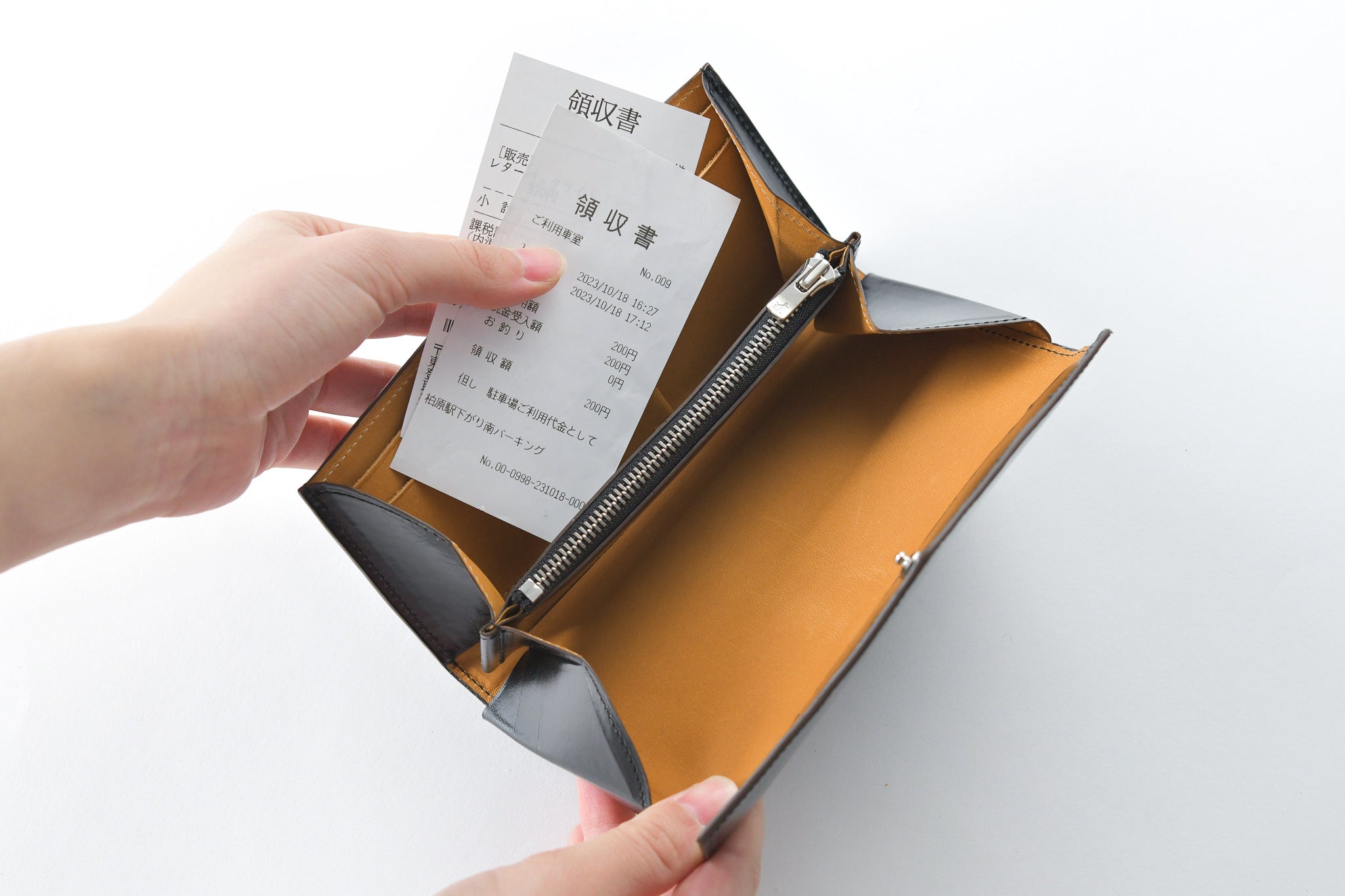 コンパクト財布ではあまり入れることが出来なかったレシートや領収書も「極小長財布Ficelle-フィセル-」なら入れられます!